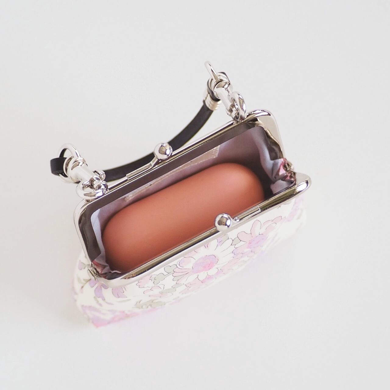 手のひらサイズのがまぐちコインケースに持ち手を付けました。