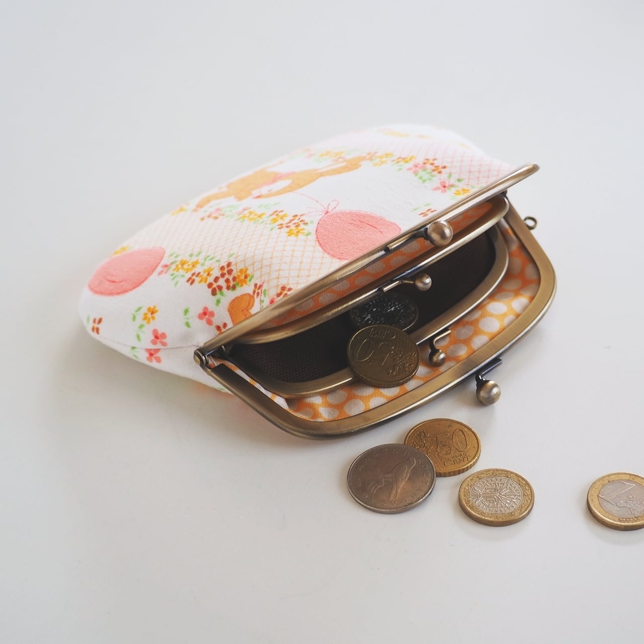 丸い形がかわいい親子タイプのがまぐち財布です。