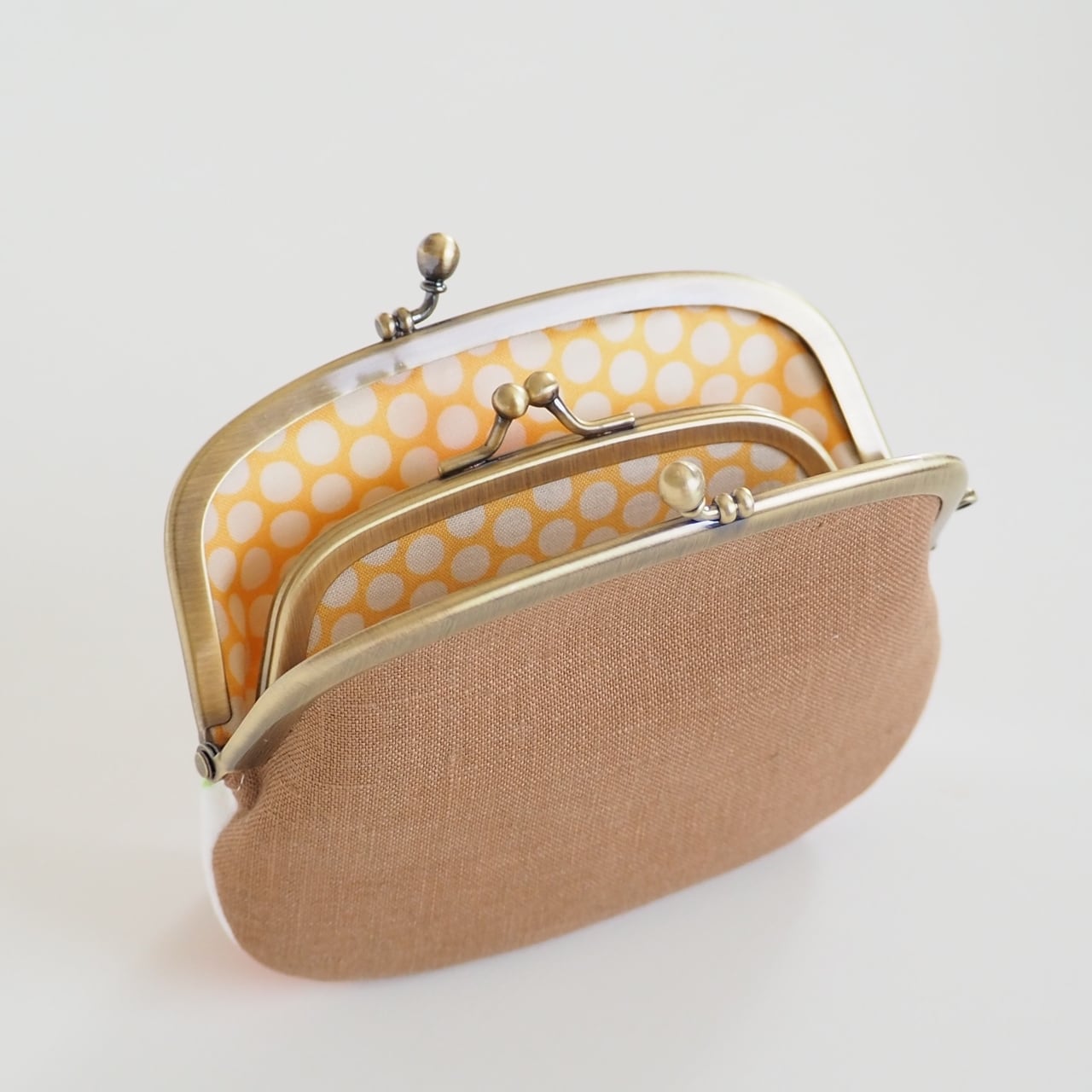二つ折りのお札やカードが入るサイズの親子がま口財布です。