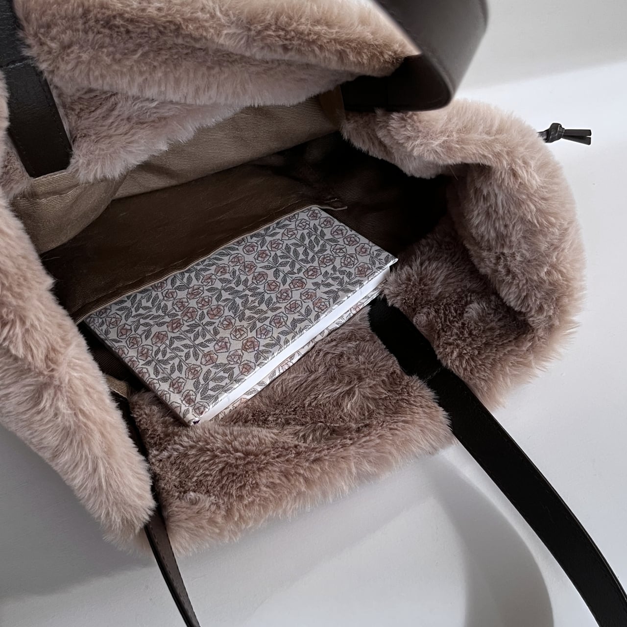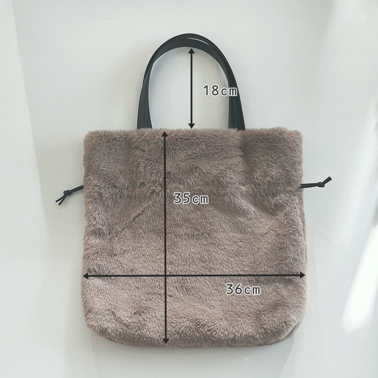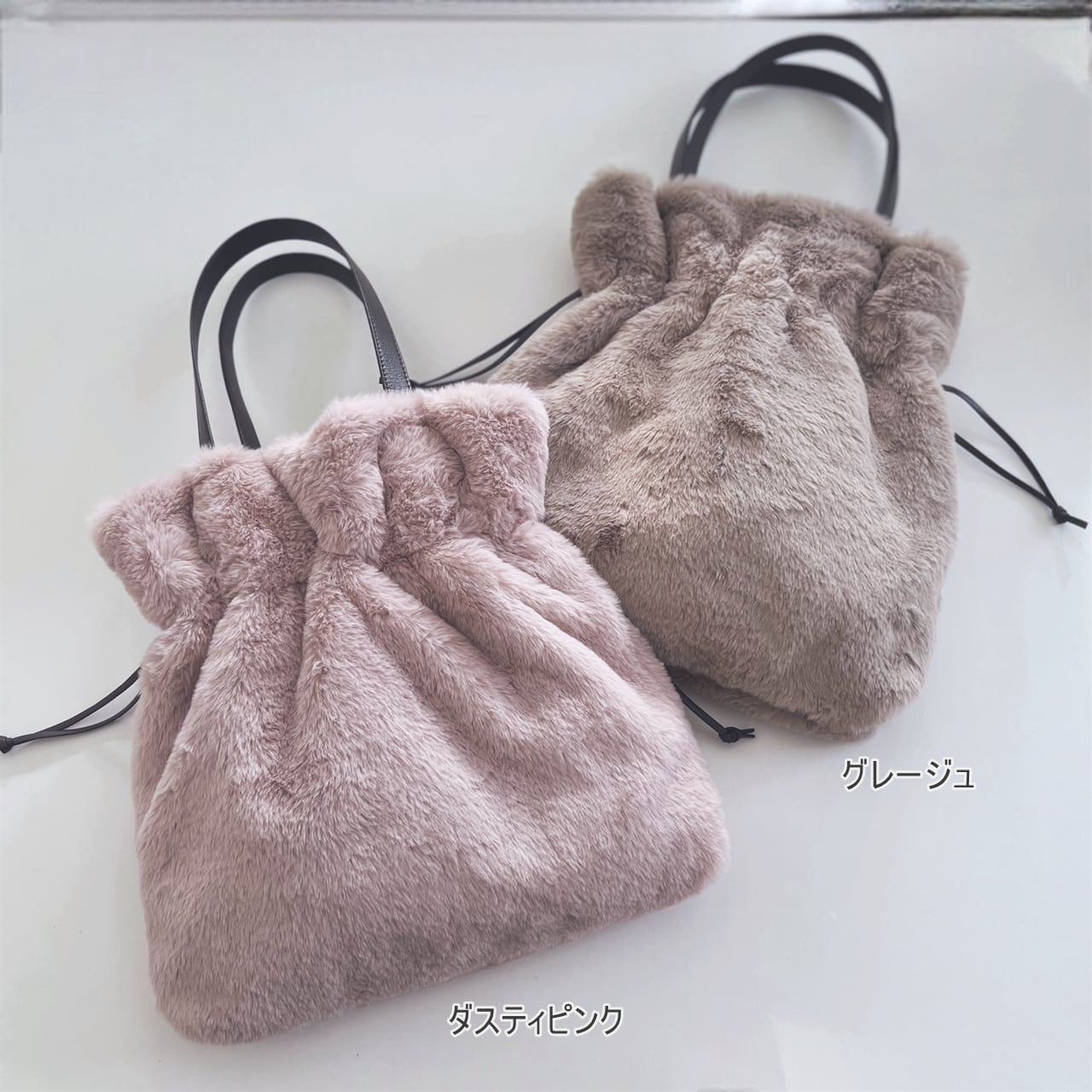 ふわふわのラビットファーでつくった巾着トートバッグです。