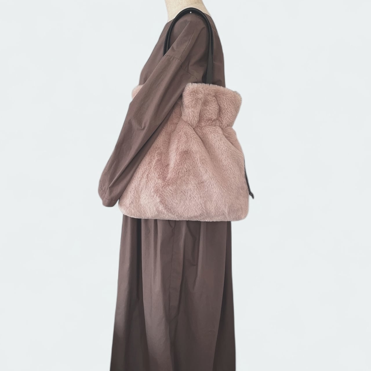 くすんだ色味のダスティーピンクなので甘すぎず大人でも持ちやすいファーバッグです。