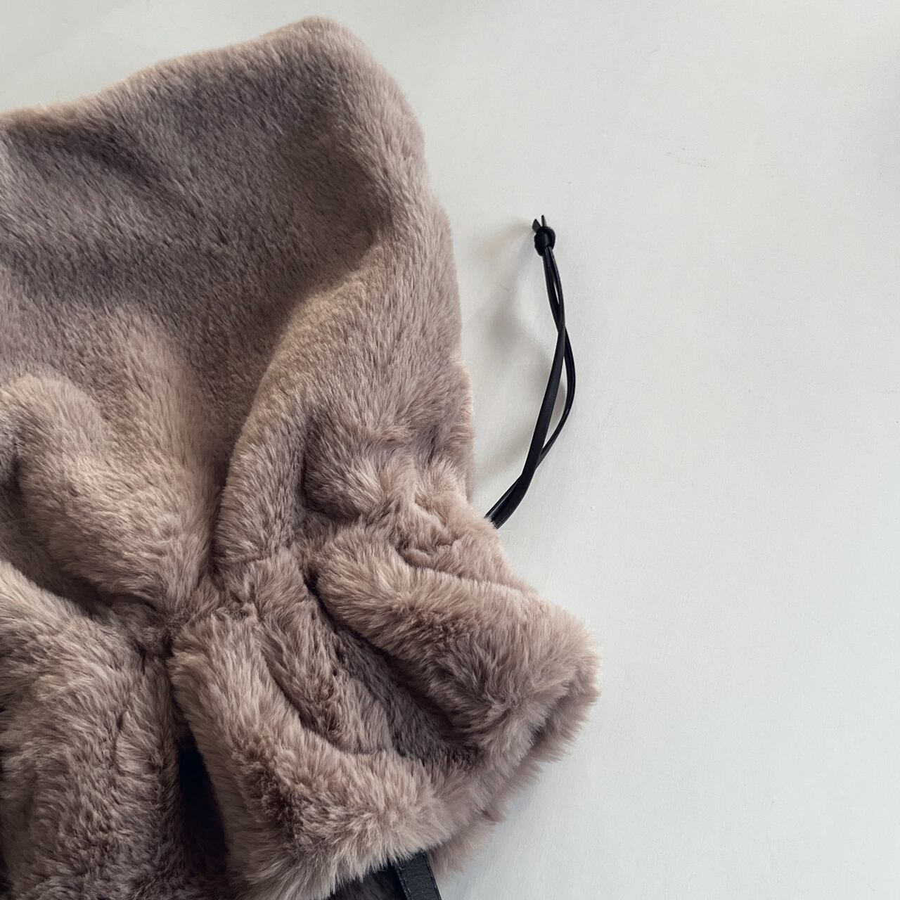 ふわふわのラビットファーでつくった巾着トートバッグです。