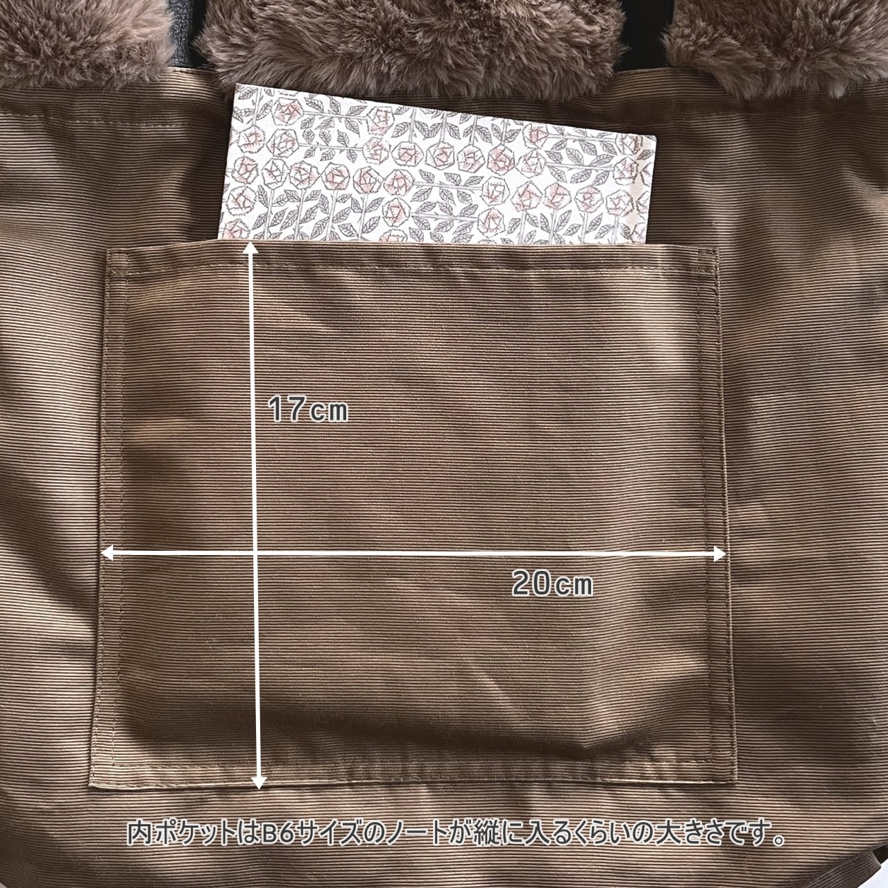内ポケットがひとつあります。内ポケットサイズ(縦約17cm×横約20cm)