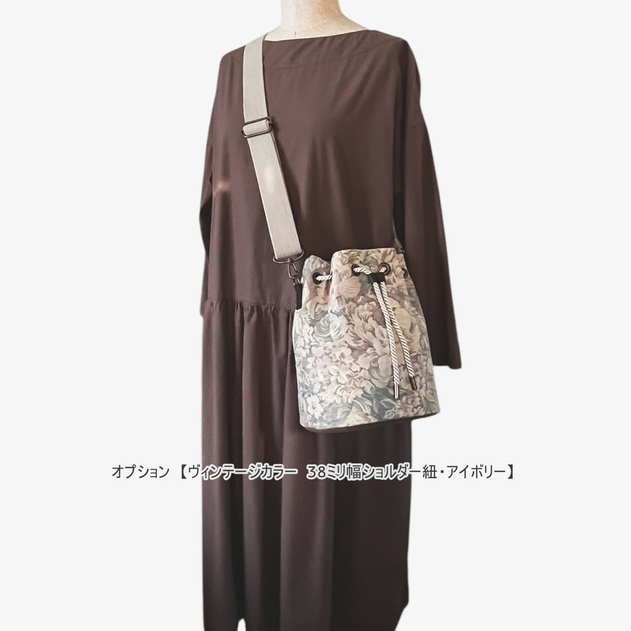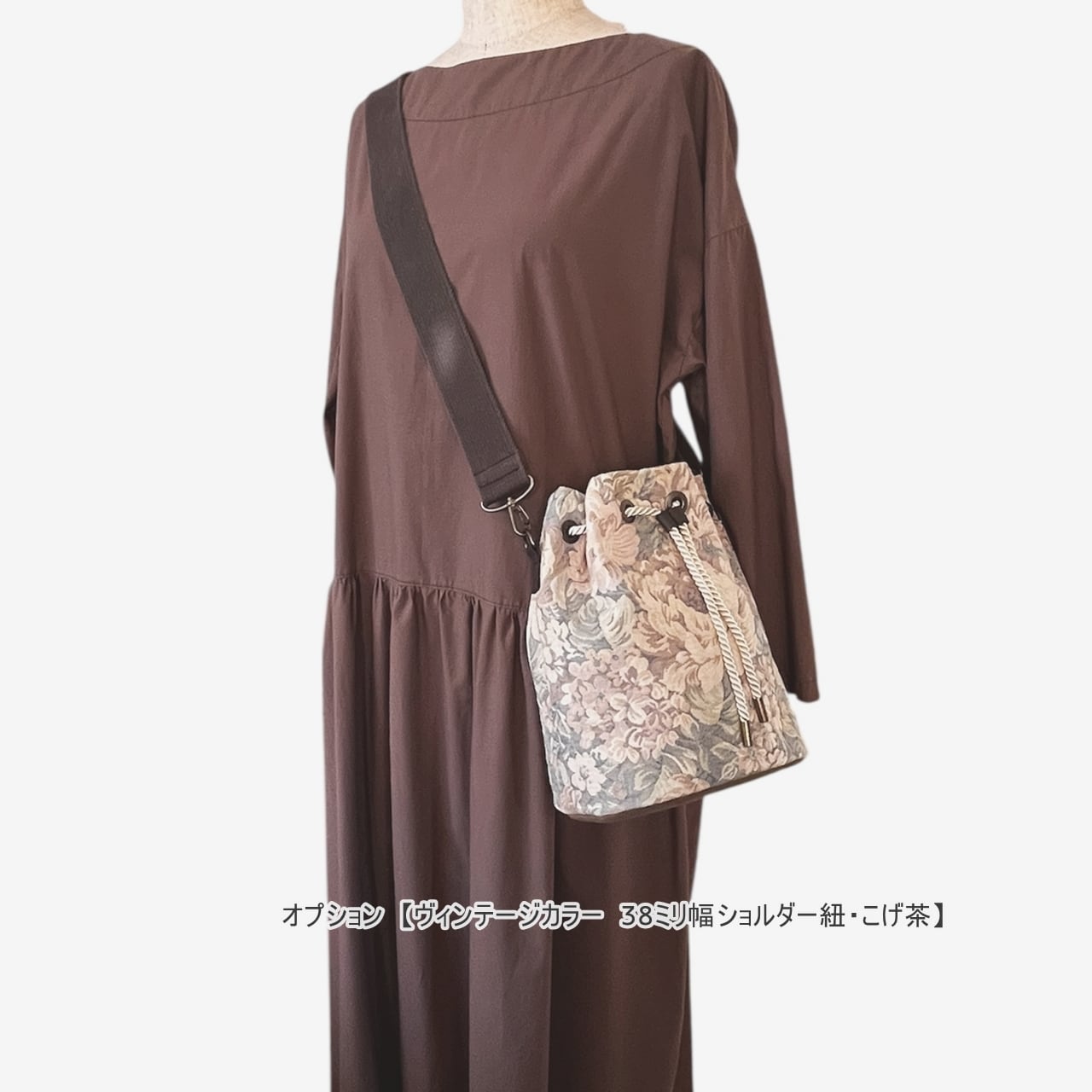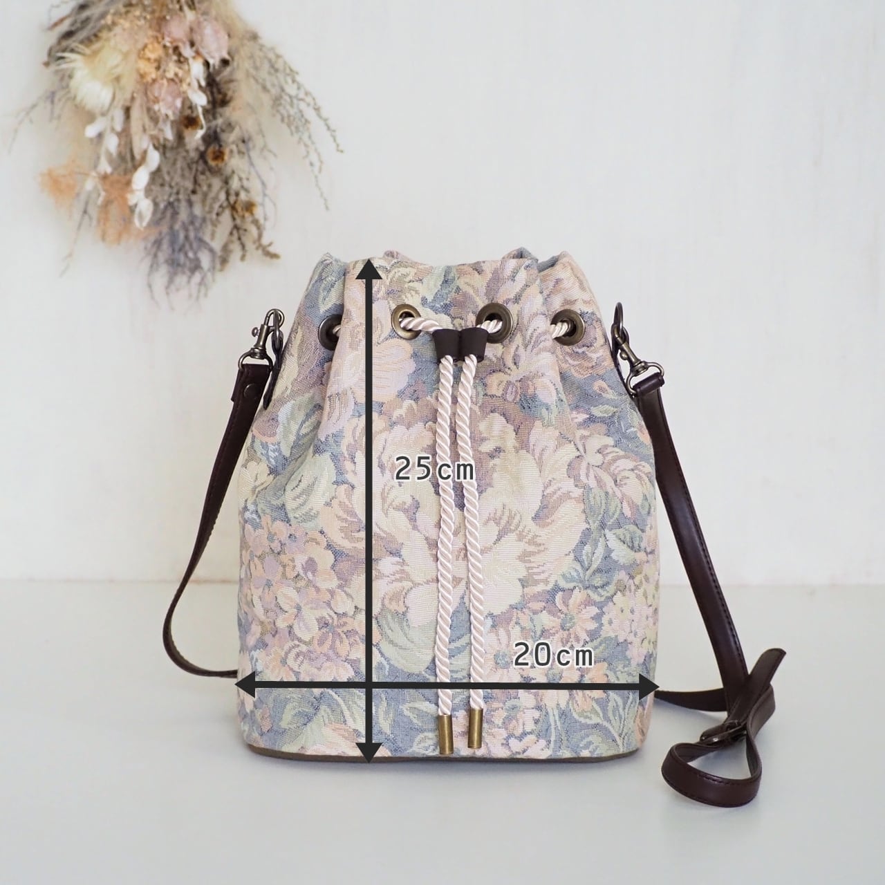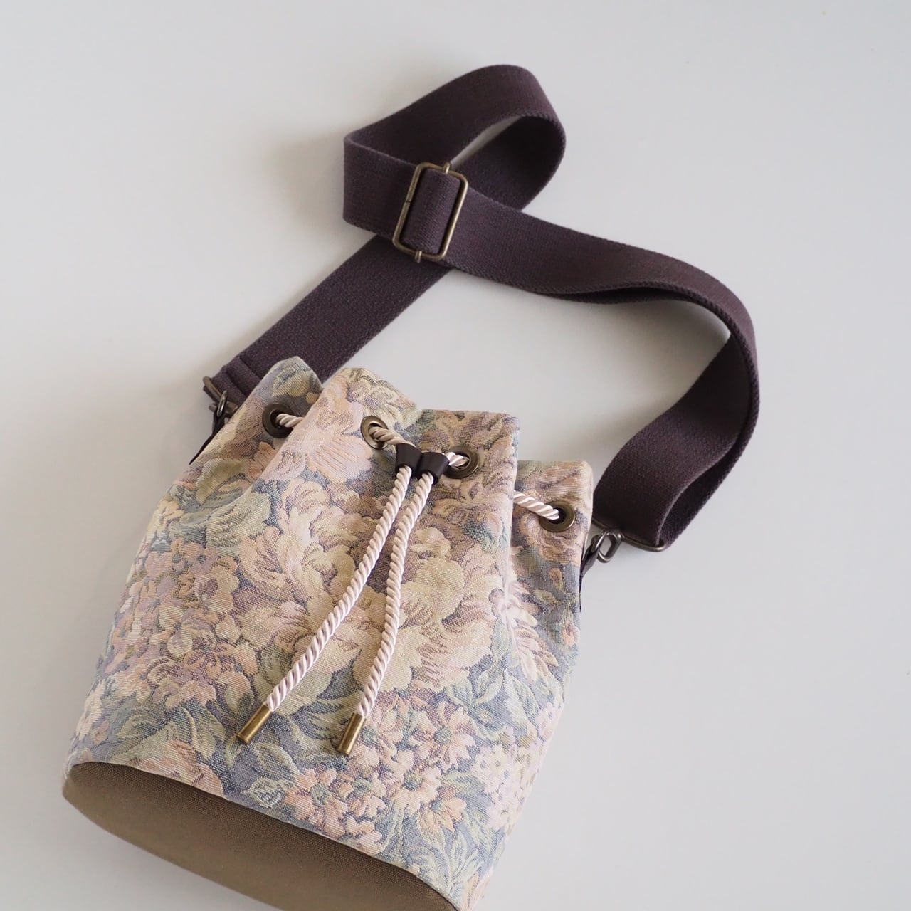 レトロクラシックなバラ柄のジャガード生地でつくった巾着ショルダーバッグ。