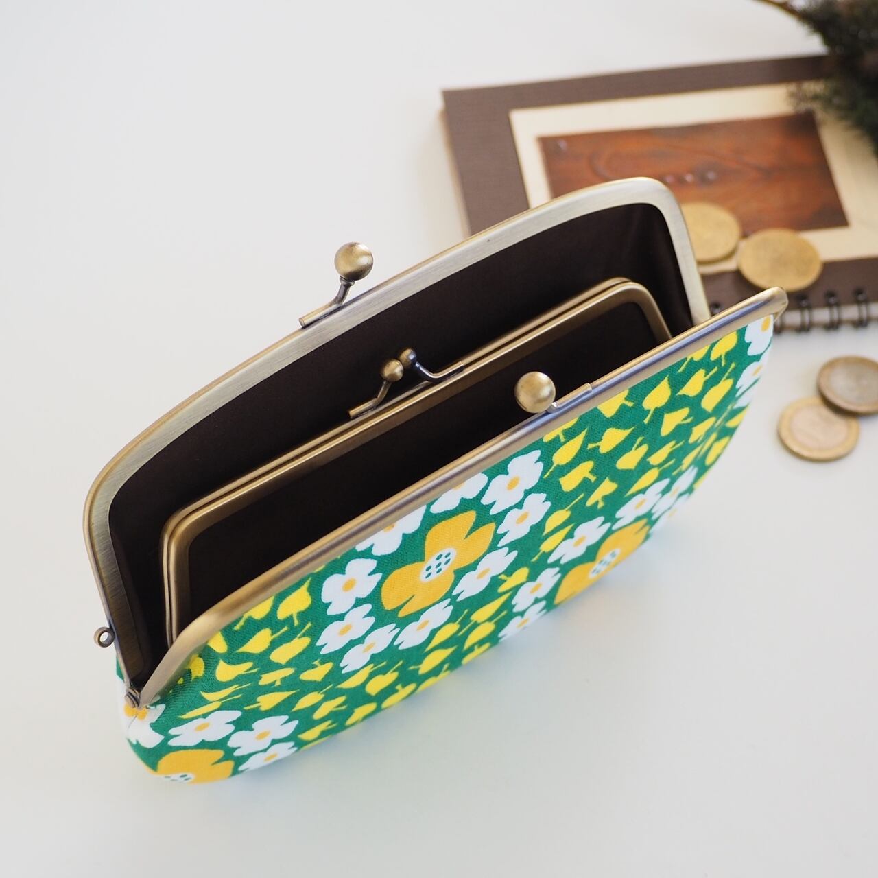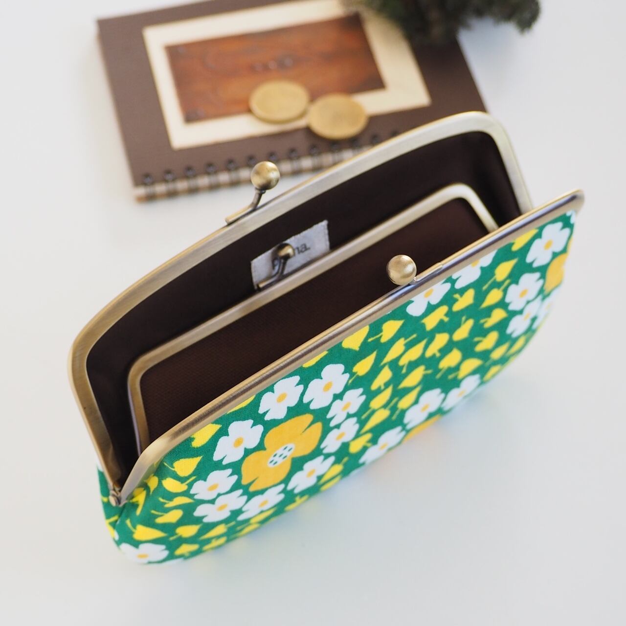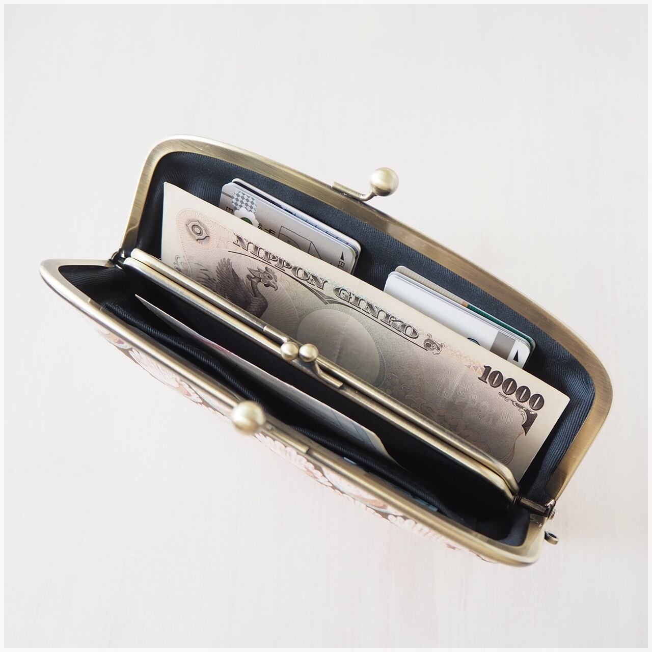 内側にもうひとつがま口がある親子タイプのがま口長財布です。