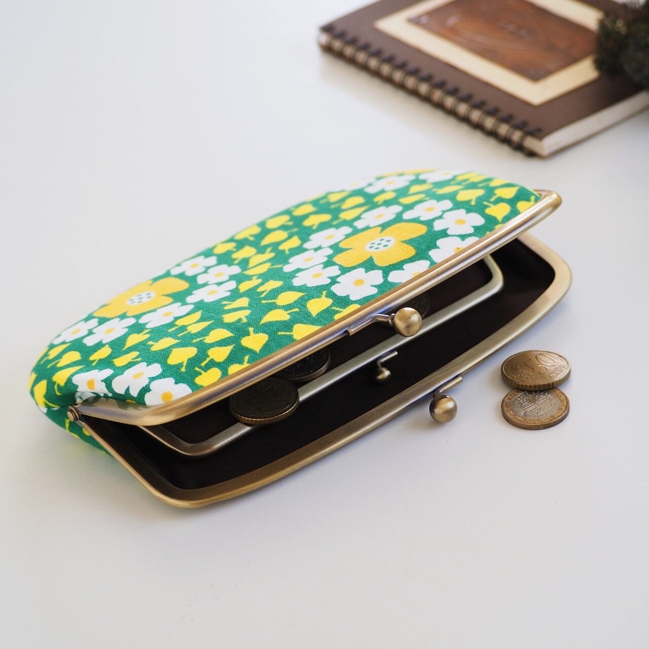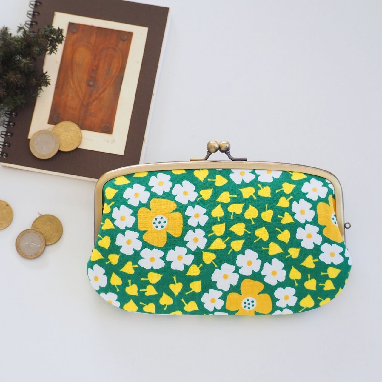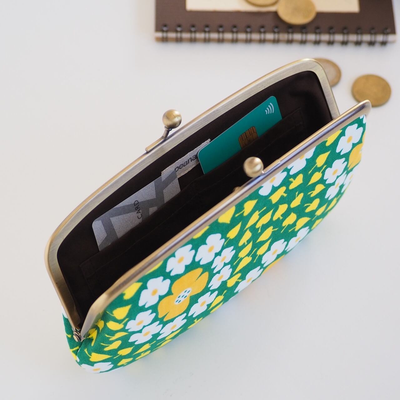 内側にもうひとつがま口がある親子タイプのがま口長財布です。