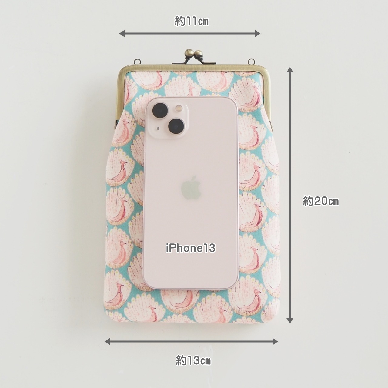 がま口のスマホショルダーポーチ・スマホポシェットです。