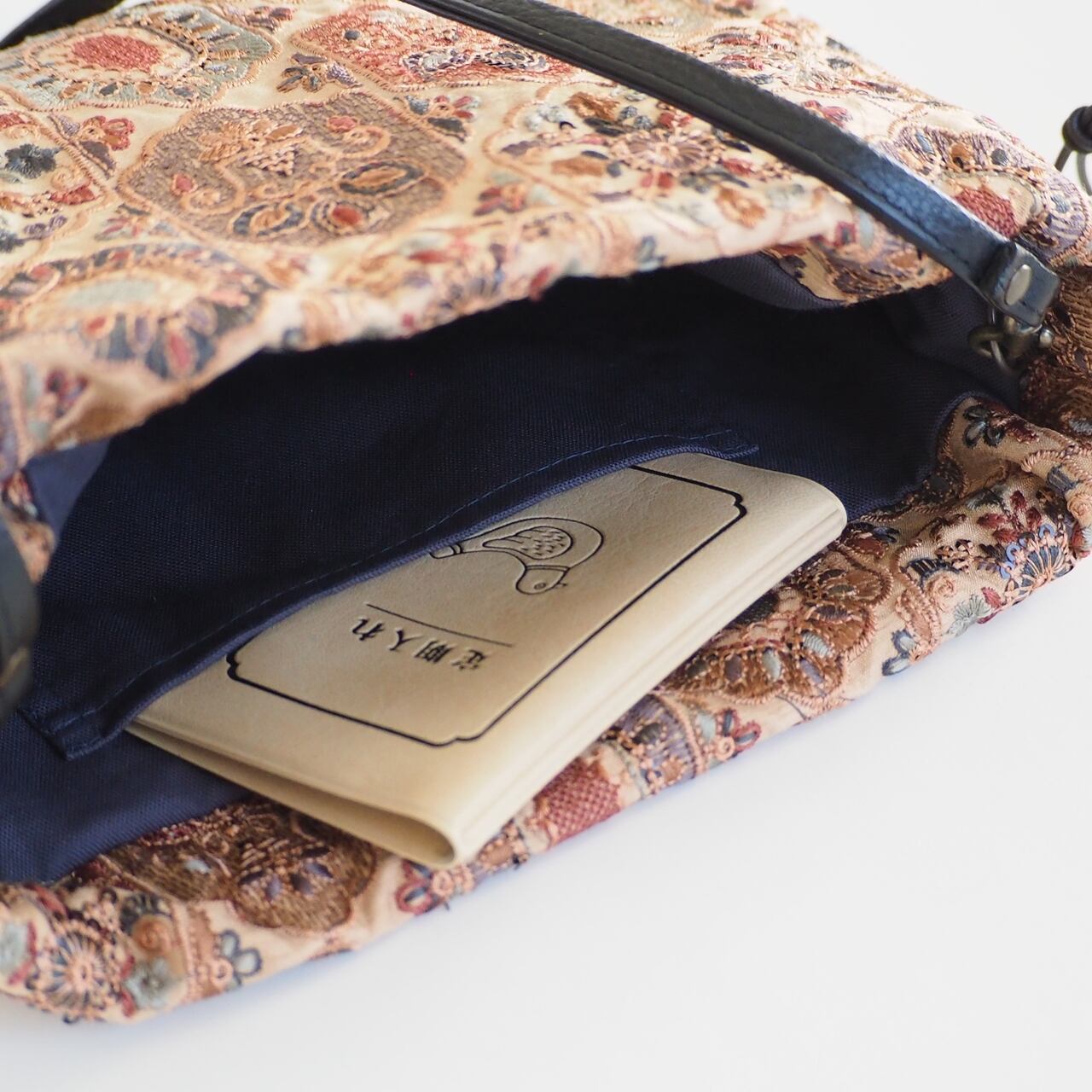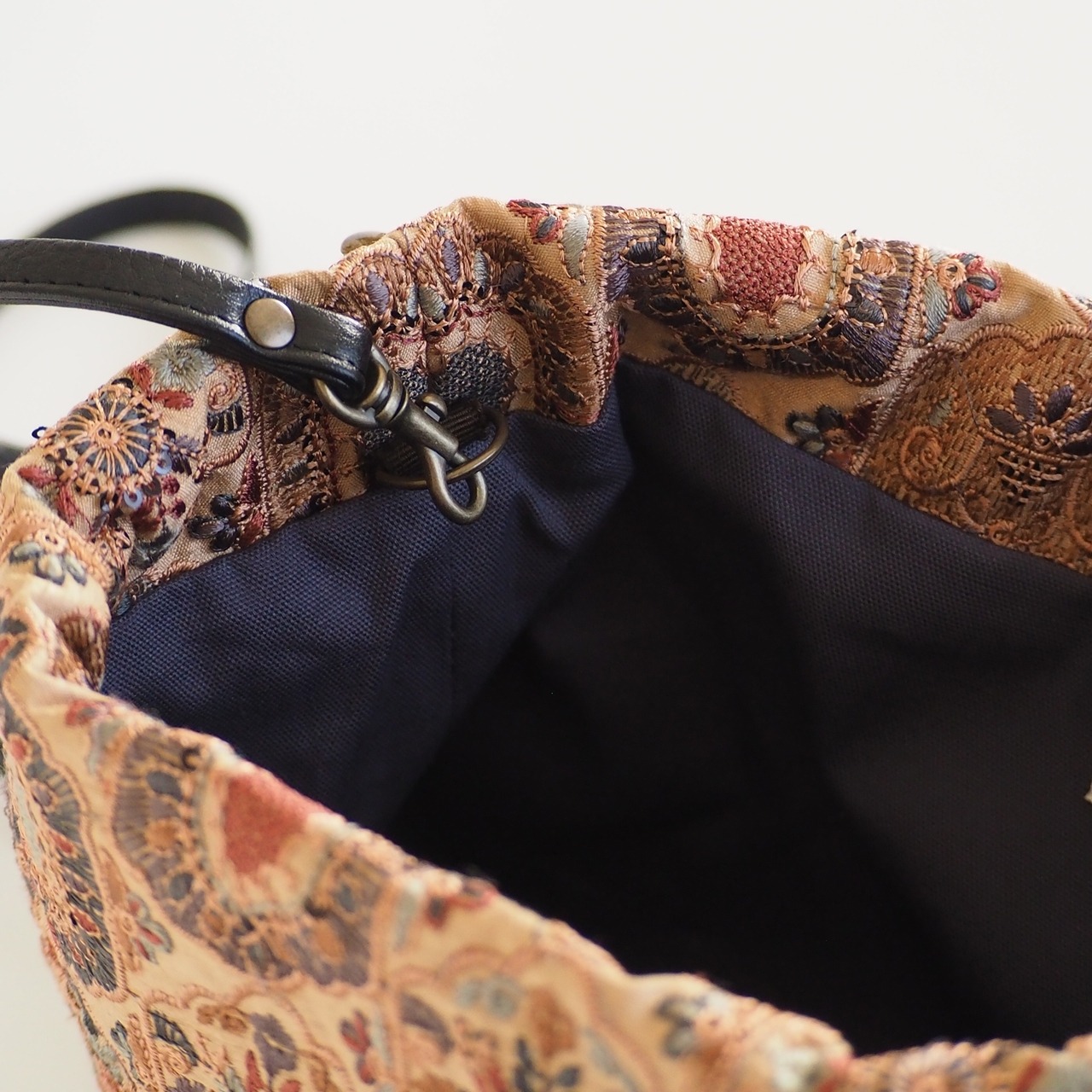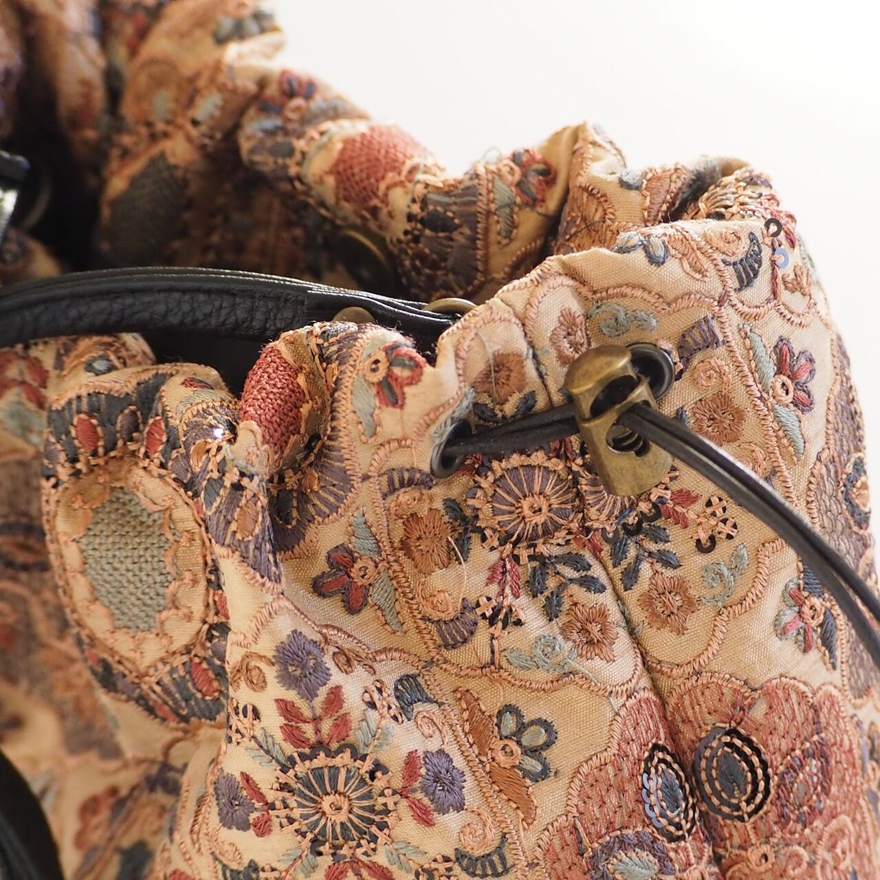総柄ですが渋めの色合いの刺繍生地なので肌なじみもよくコーディネートに取り入れやすい雰囲気です。