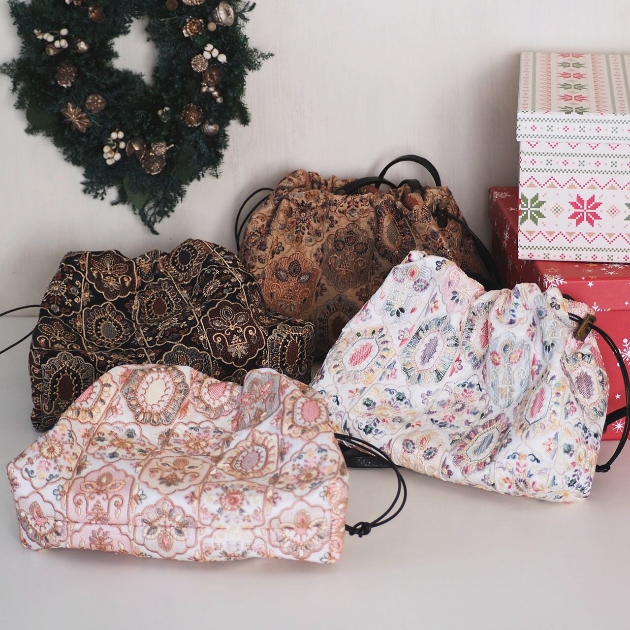 口をふんわりとゆるく絞るエアリー巾着ショルダーです。