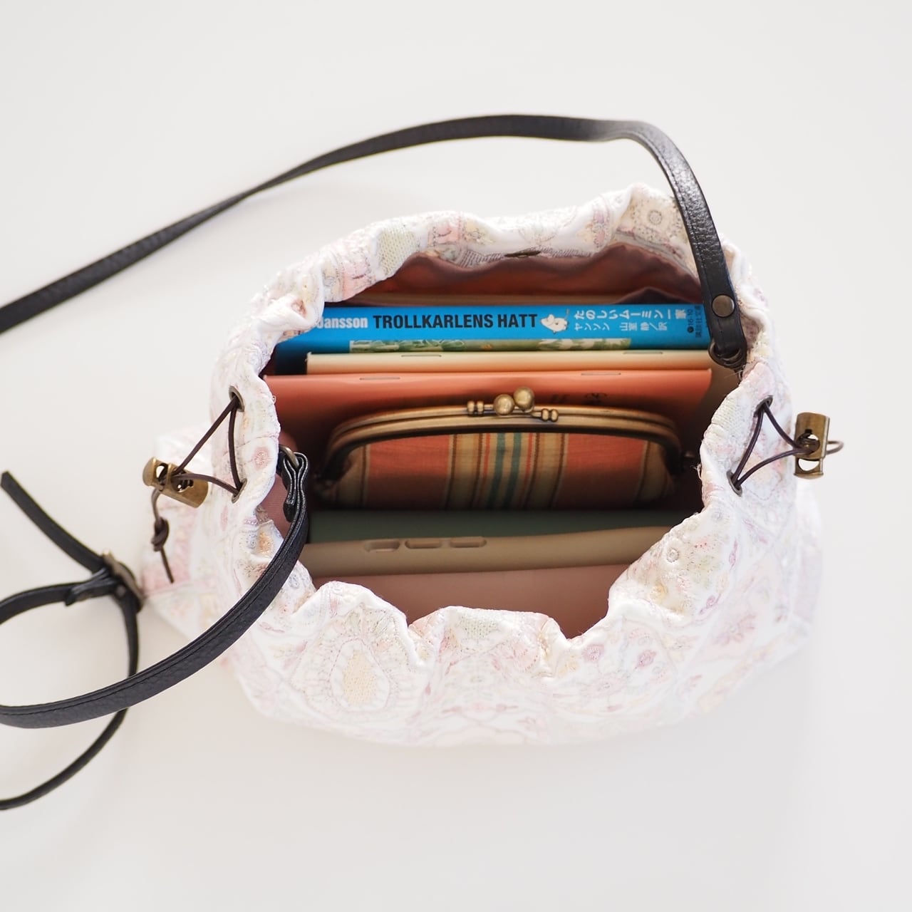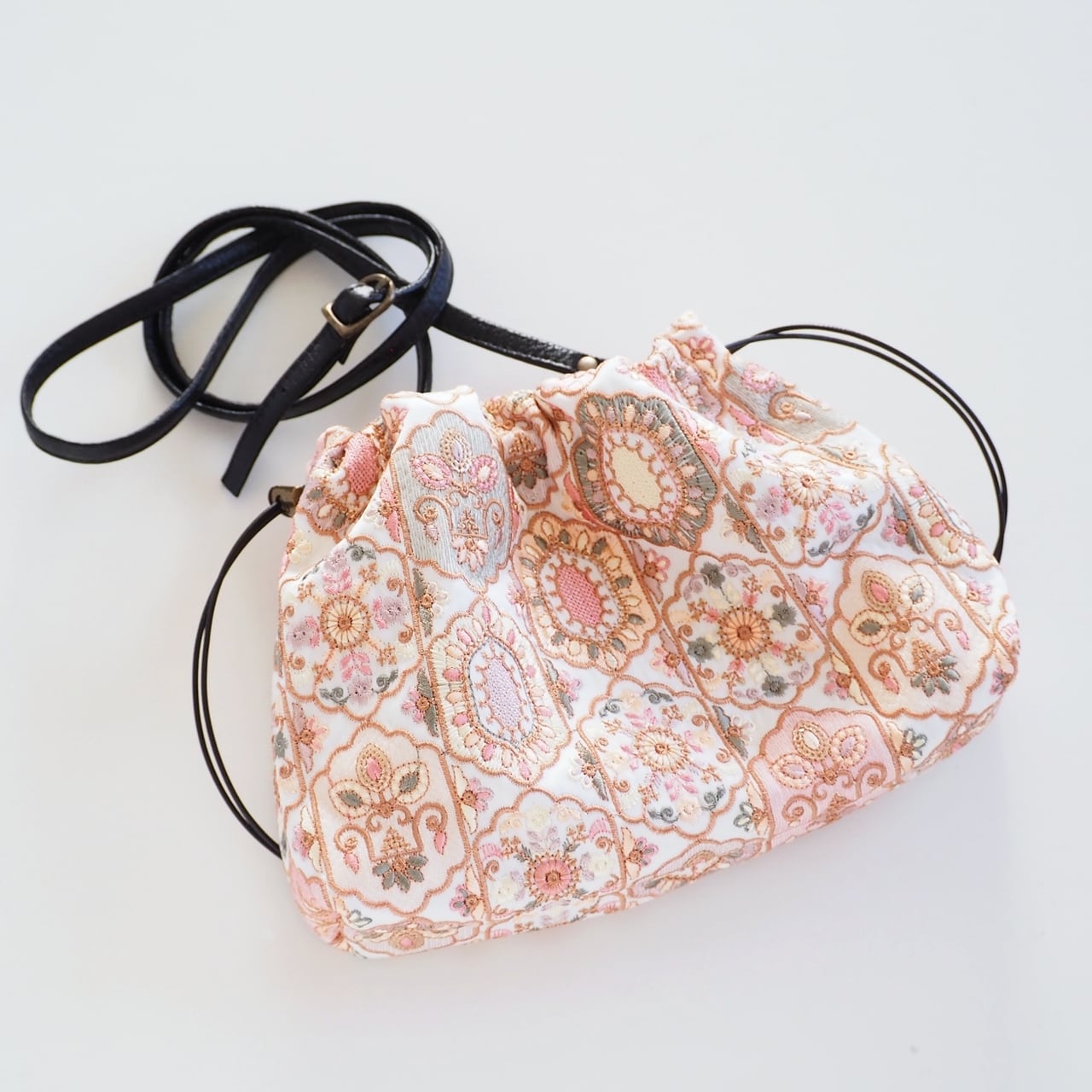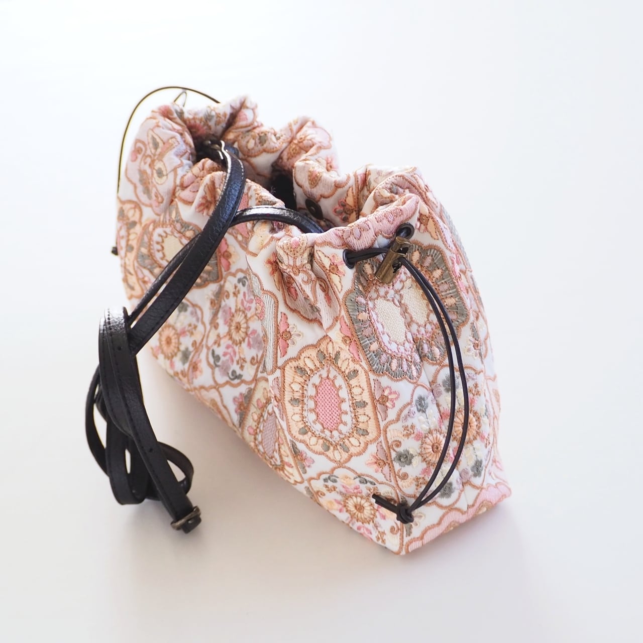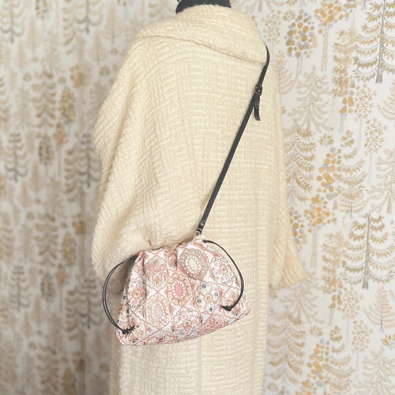 口をふんわりとゆるく絞るエアリー巾着ショルダーです。