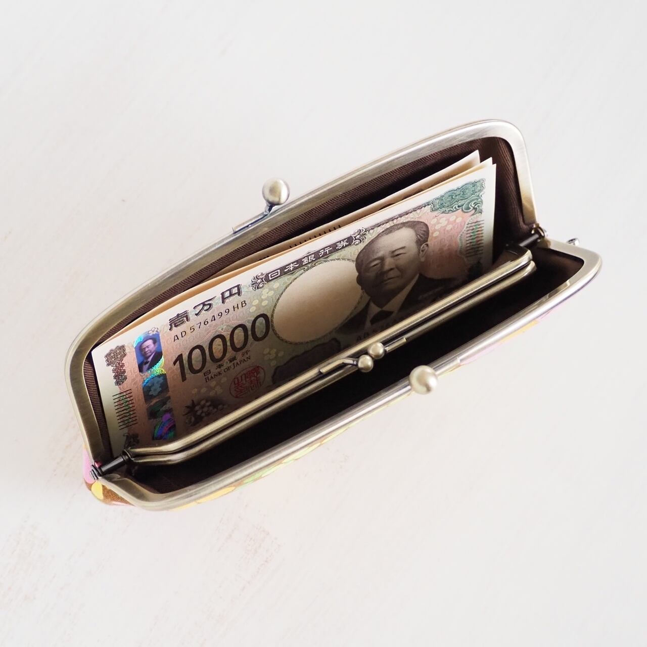 内側にもうひとつがま口がある親子タイプのがま口長財布です。