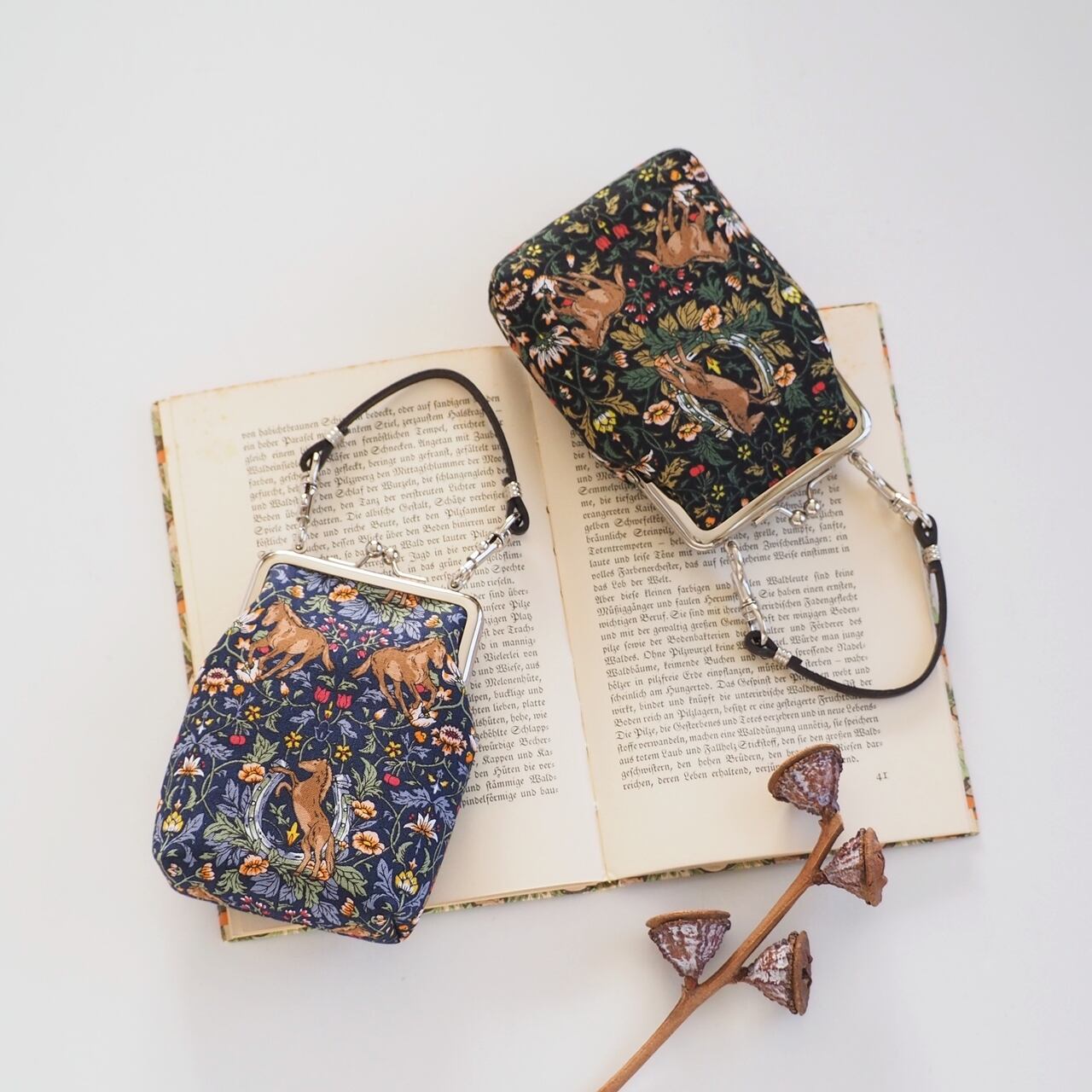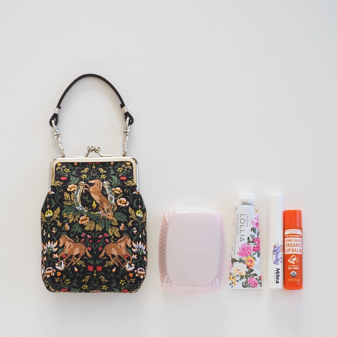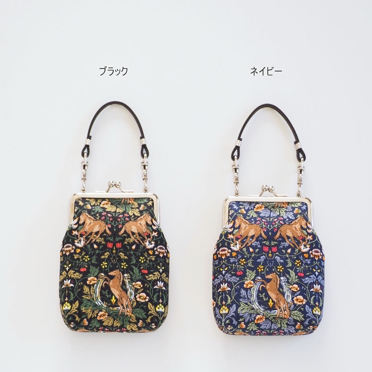 持ち手つきのがま口ポーチです。