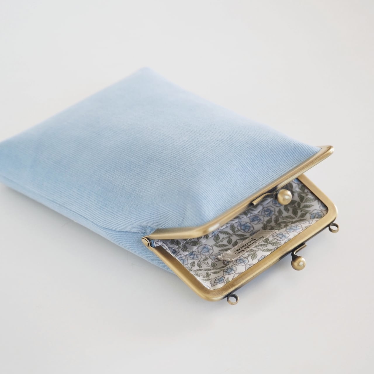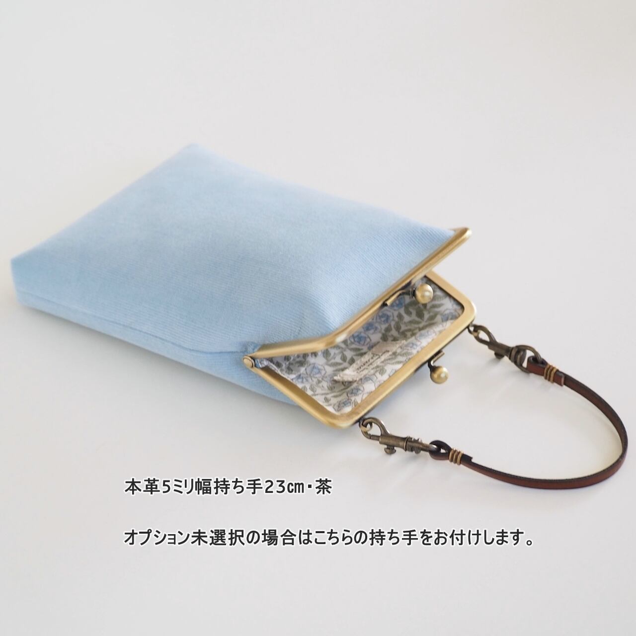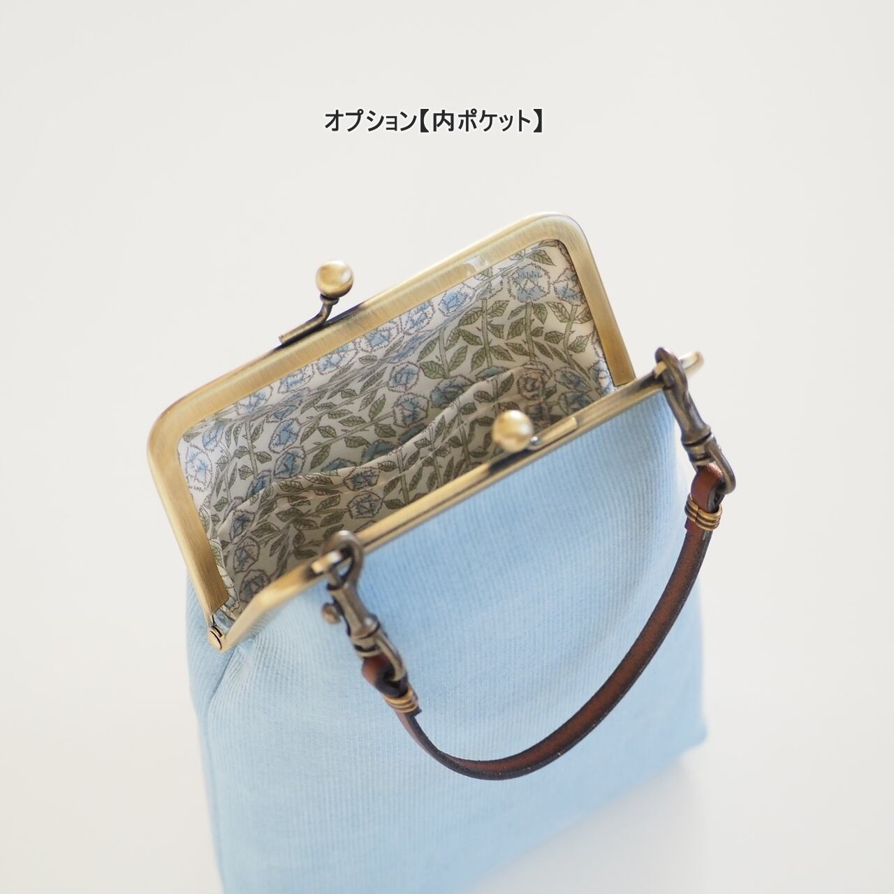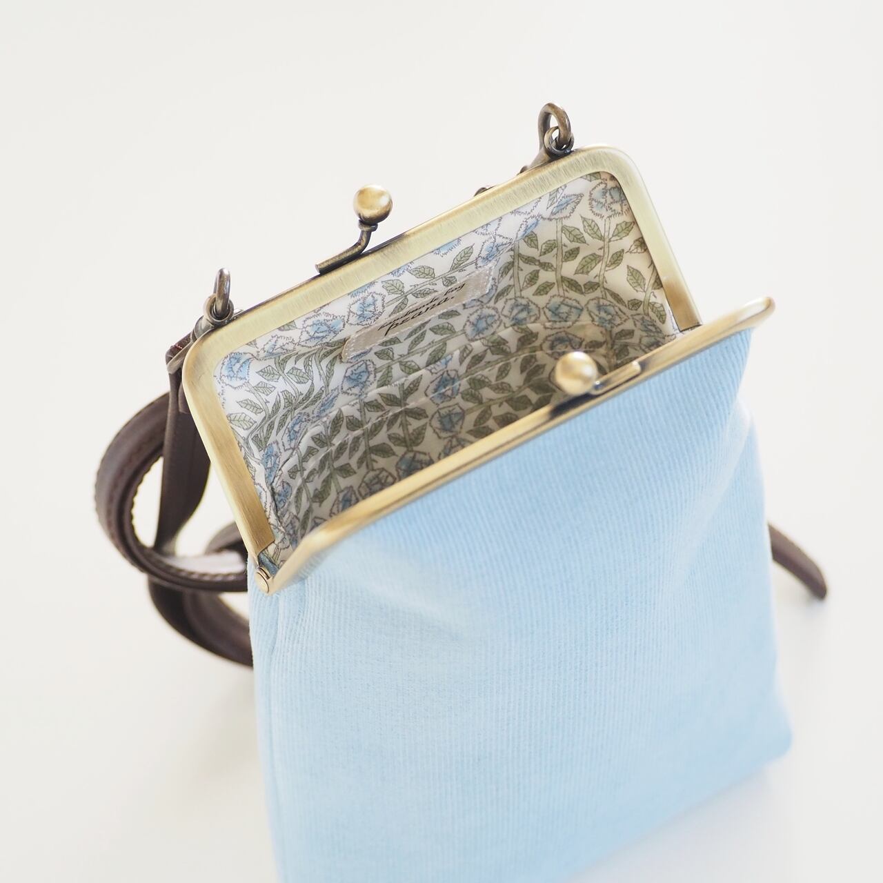 ■コーデュロイ×リバティのがま口スマホショルダーポーチ Mサイズ / ベビーブルー■ camille (cdr-bb-lbt)