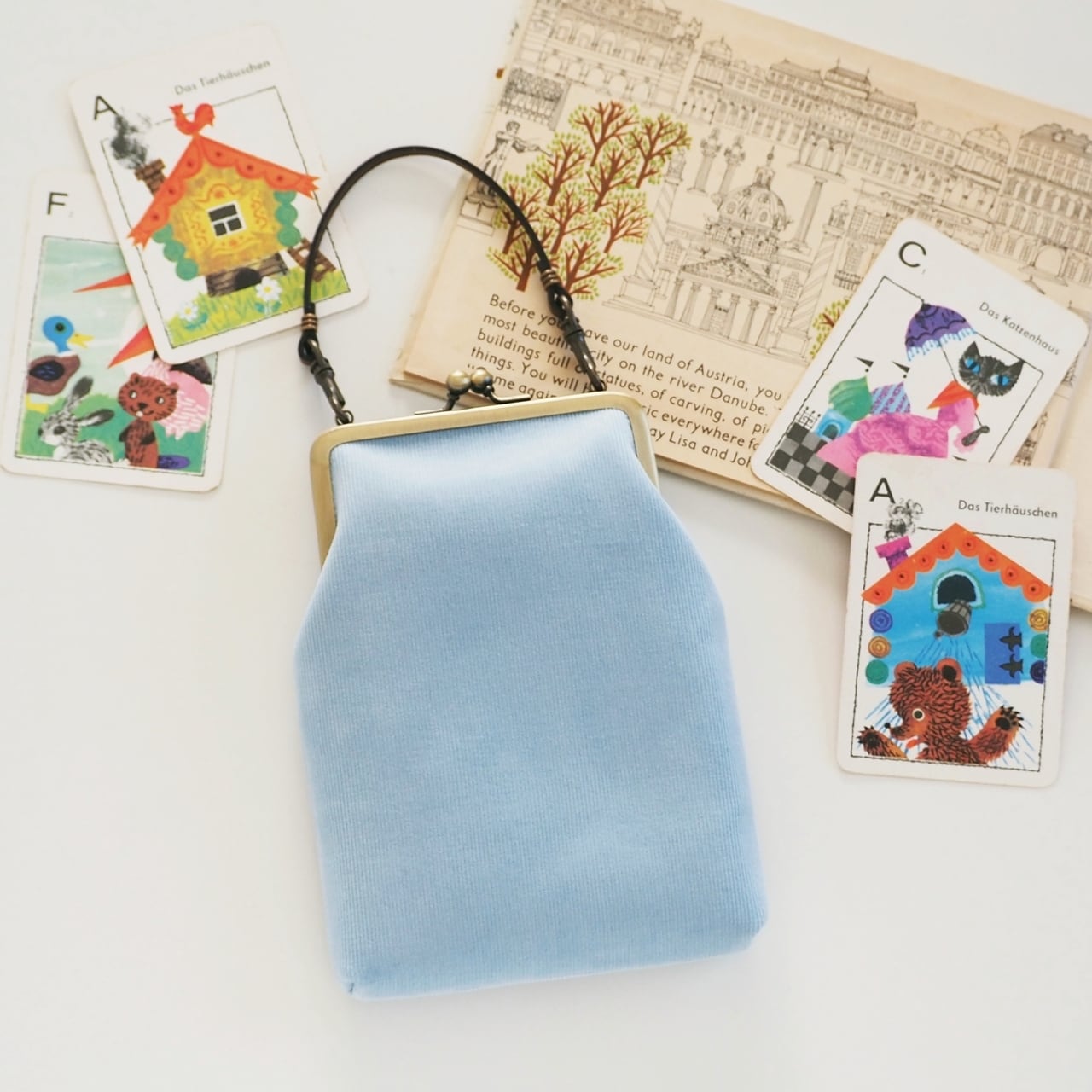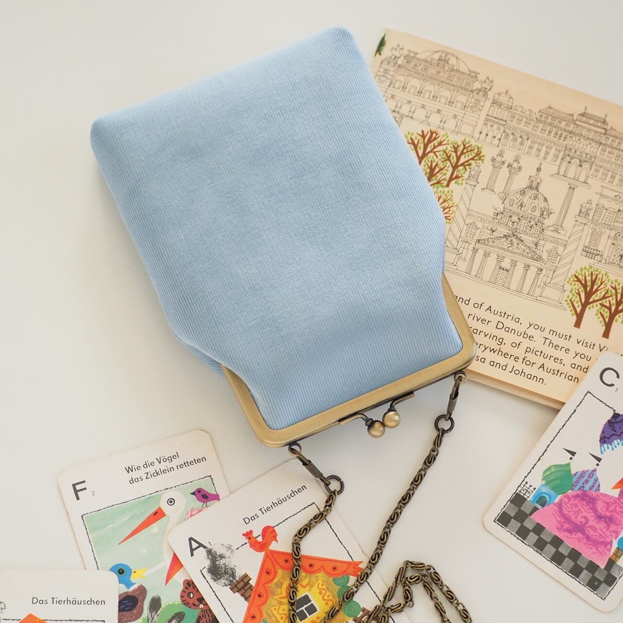 優しい色合いのブルーのコーデュロイでつくった