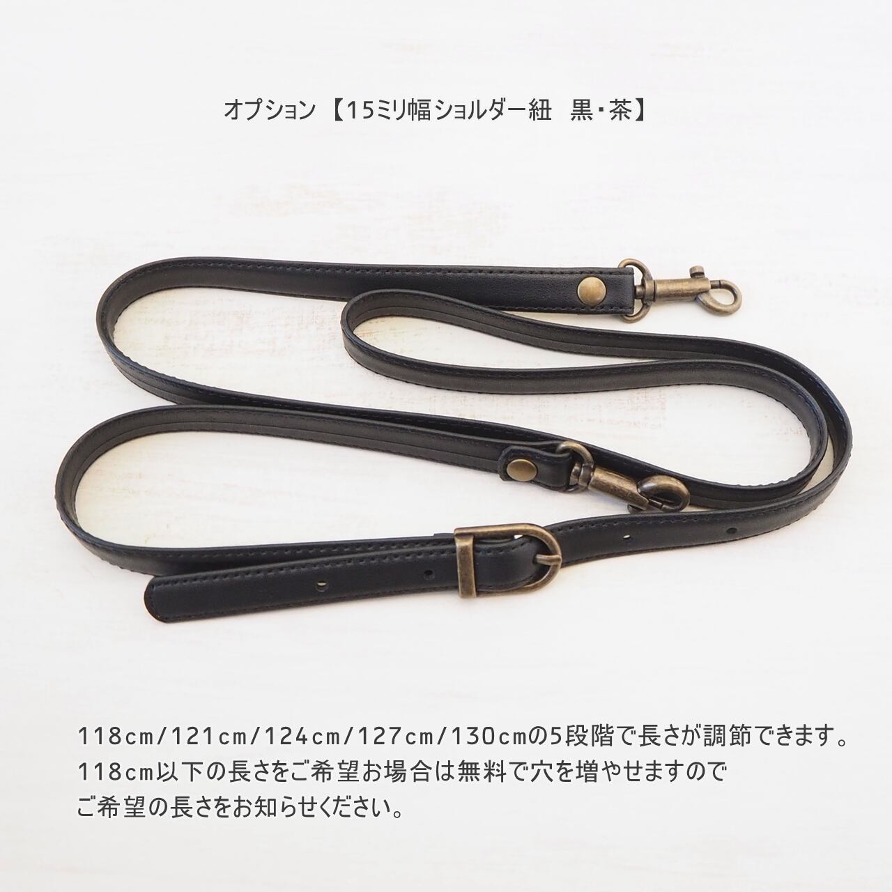 【15ミリ幅ショルダー紐 黒・茶】長さ調節可能