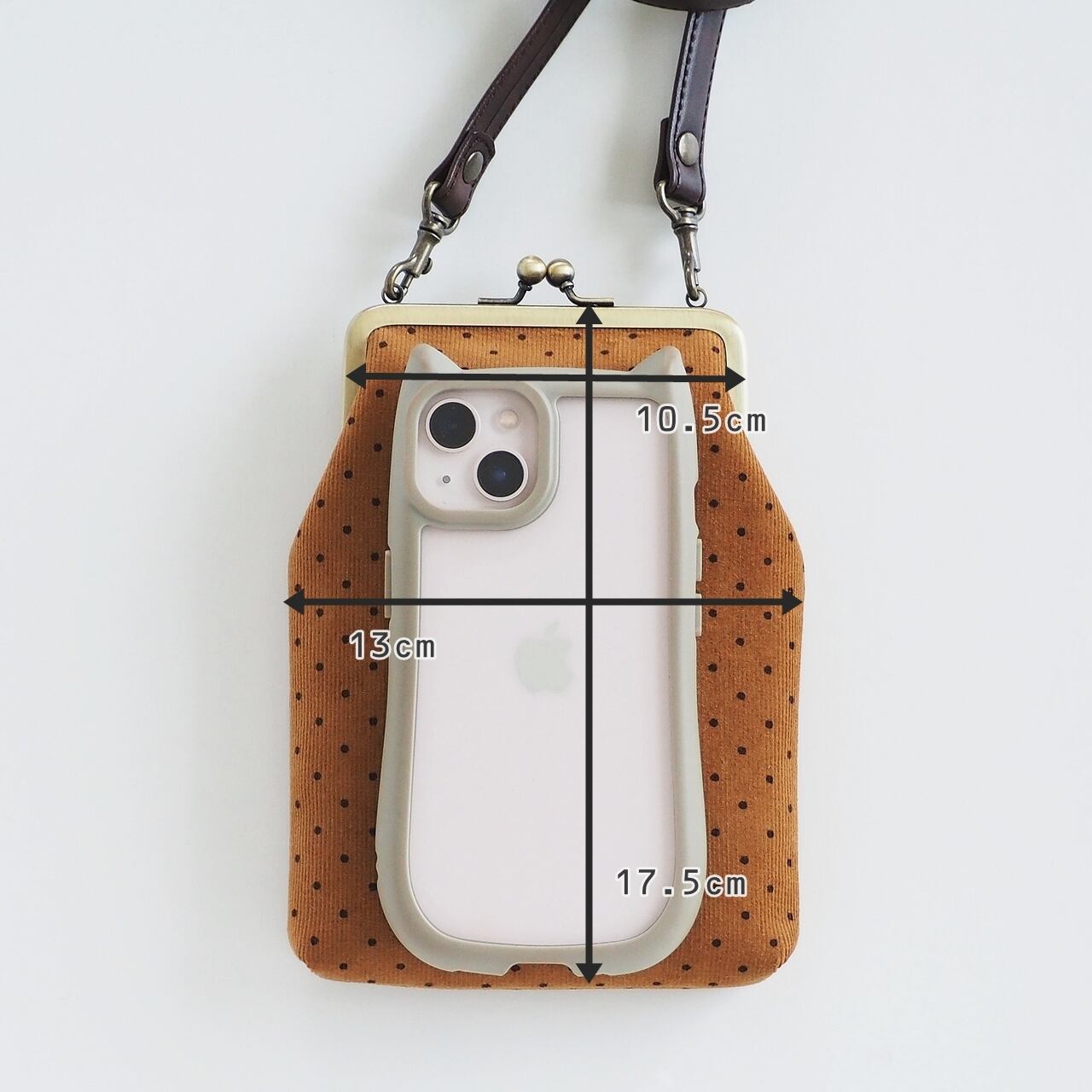 がま口のスマホポーチ・スマホポシェットです。