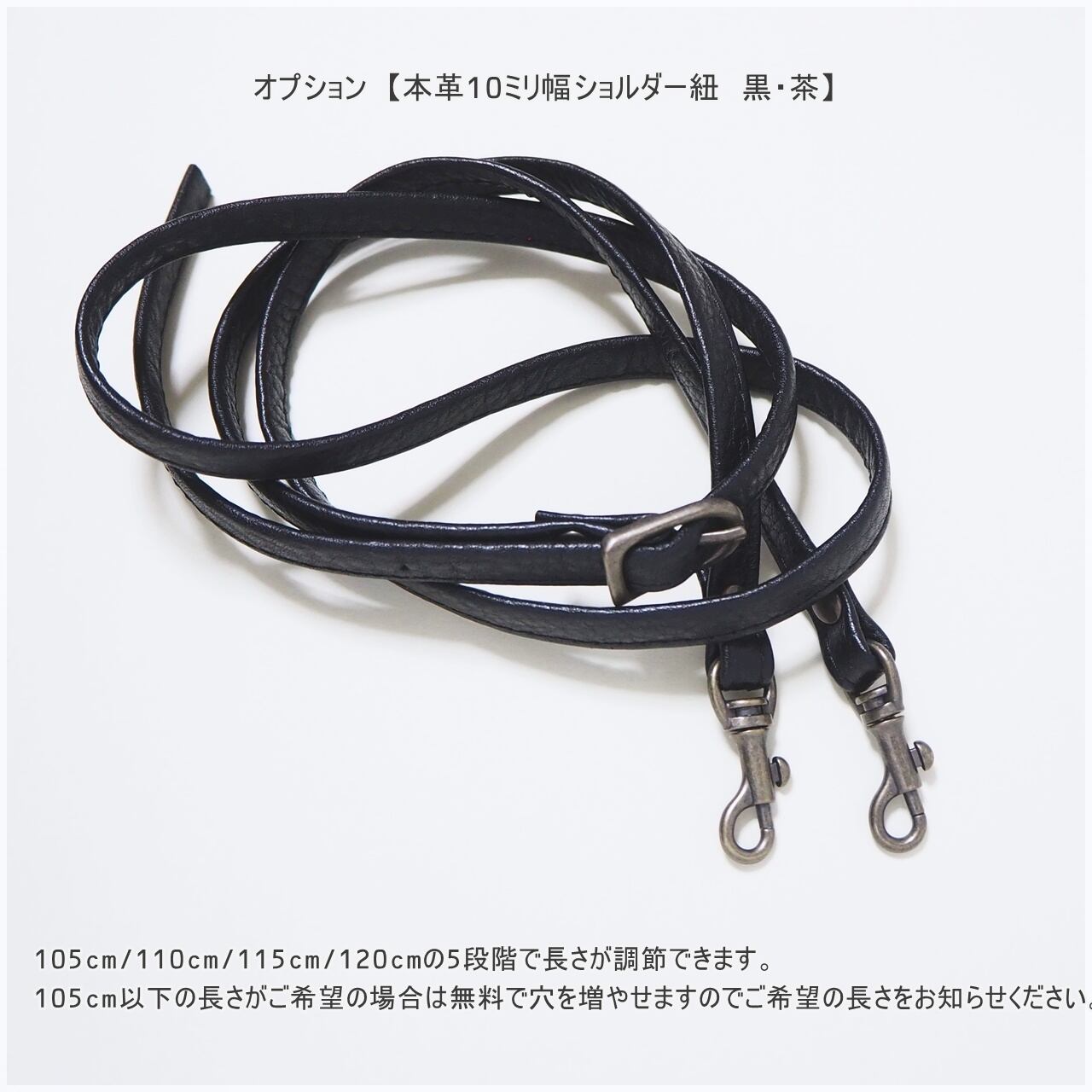【本革10ミリ幅ショルダー紐120センチ 黒・茶】長さ調節可能