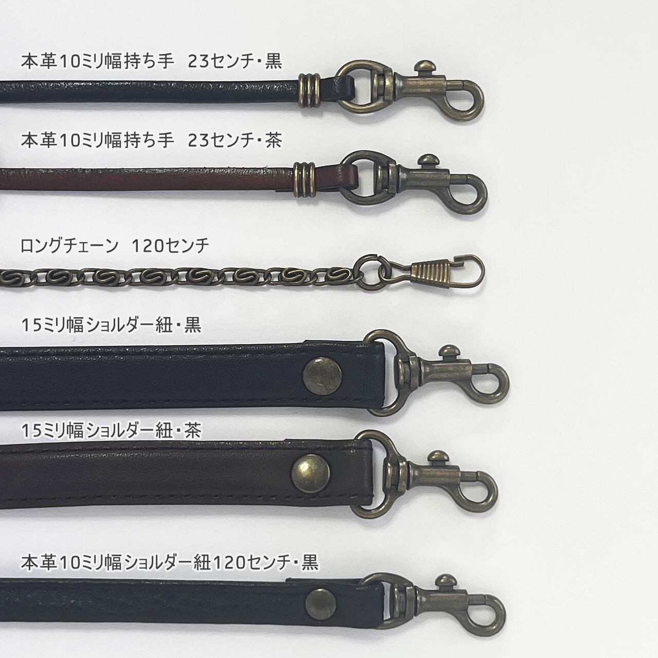 未選択の場合は 【本革5ミリ幅持ち手 23センチ 黒or茶】 をお付けします。