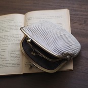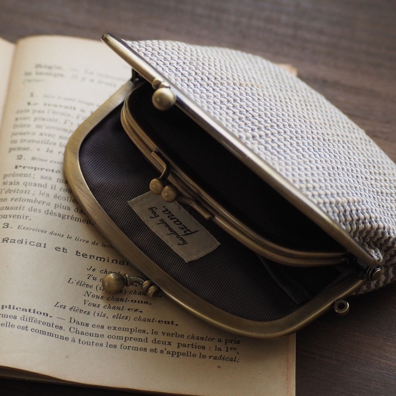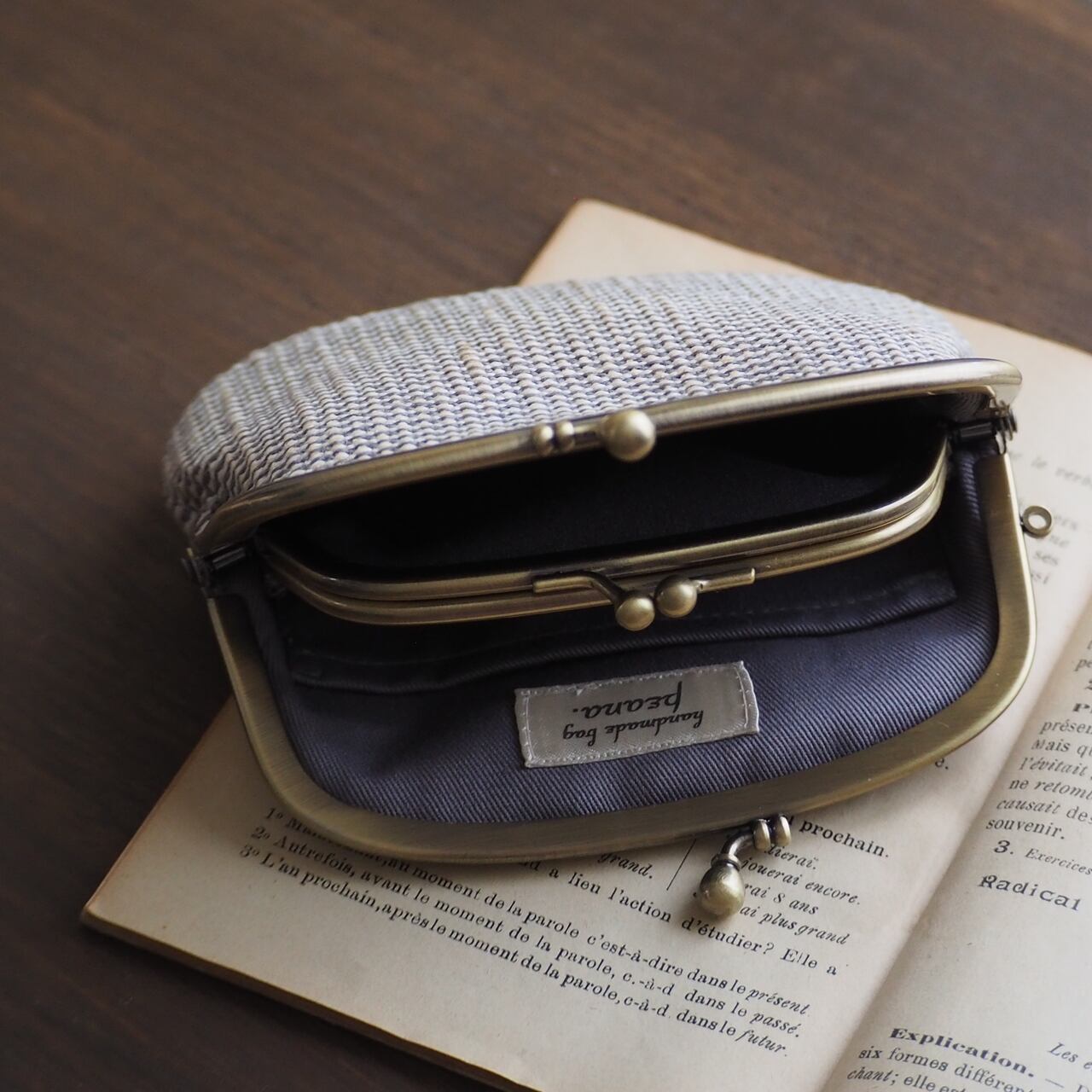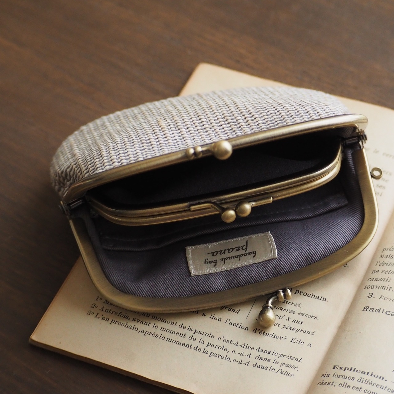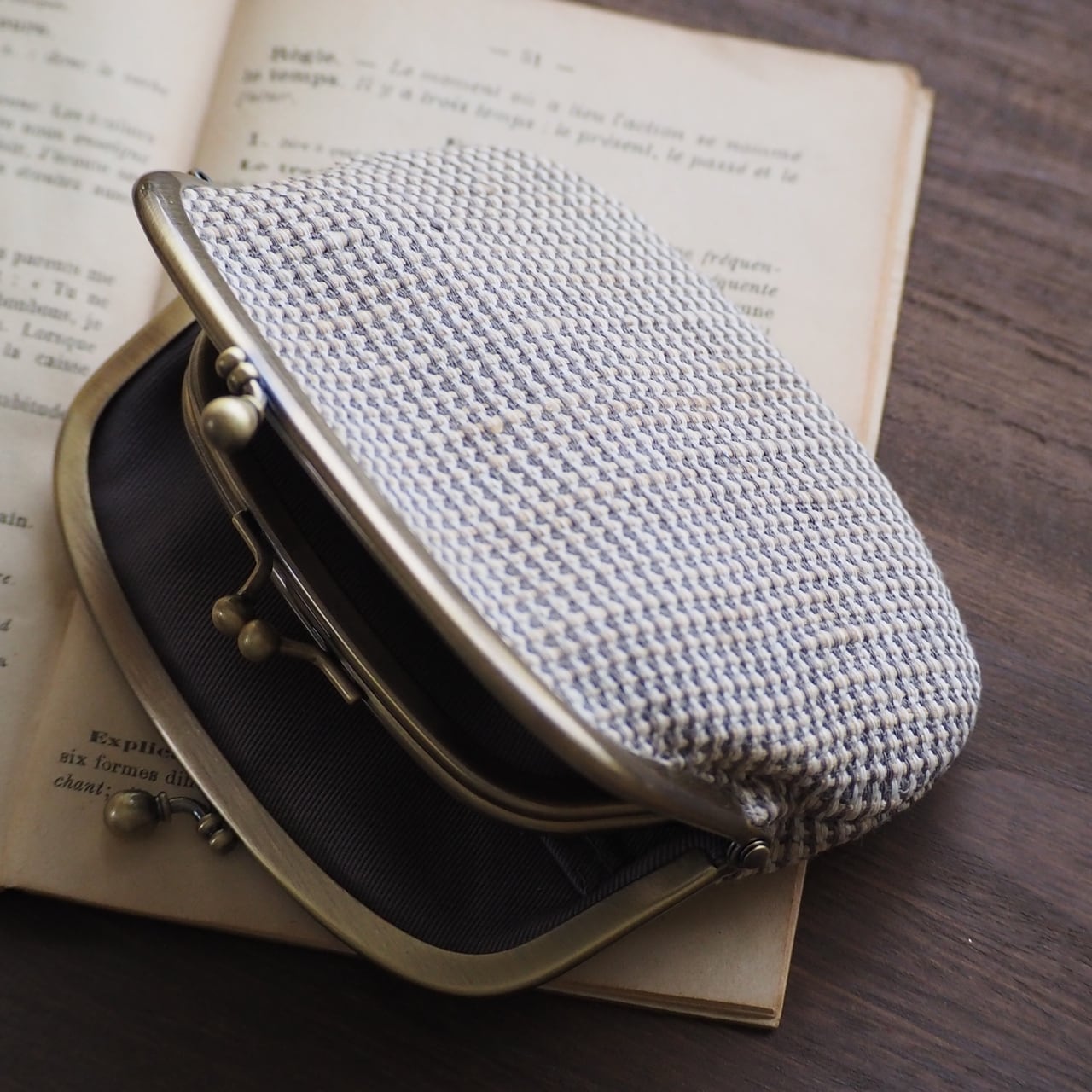 ■手紡ぎ、手織りシルク・ウールの親子がま口財布【ミニマムサイズ】 ■ lucas (gmi-g)