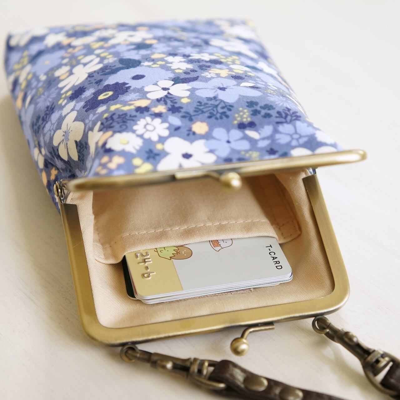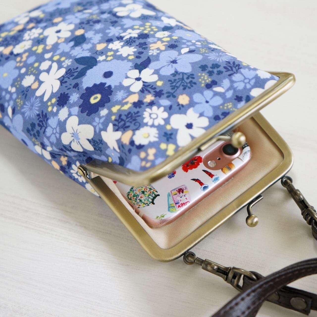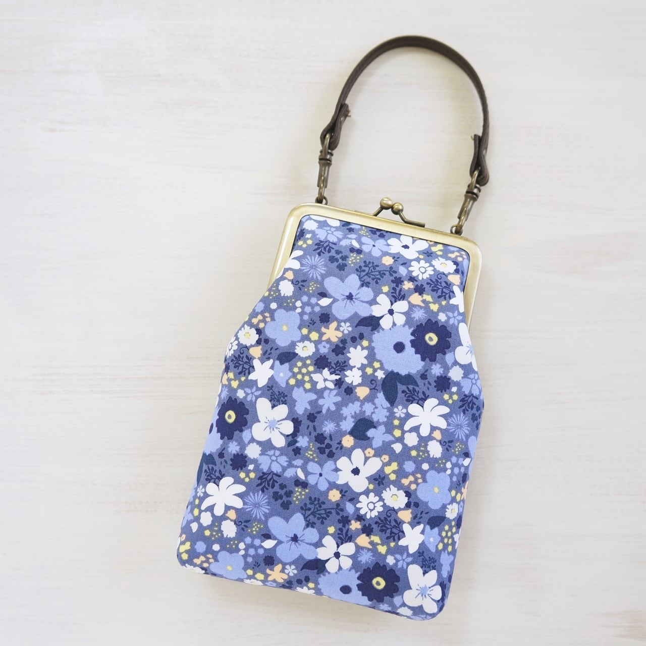 ■がま口スマホポーチ・スマホポシェット / ブルーフラワードリーム■ camille (bfd)