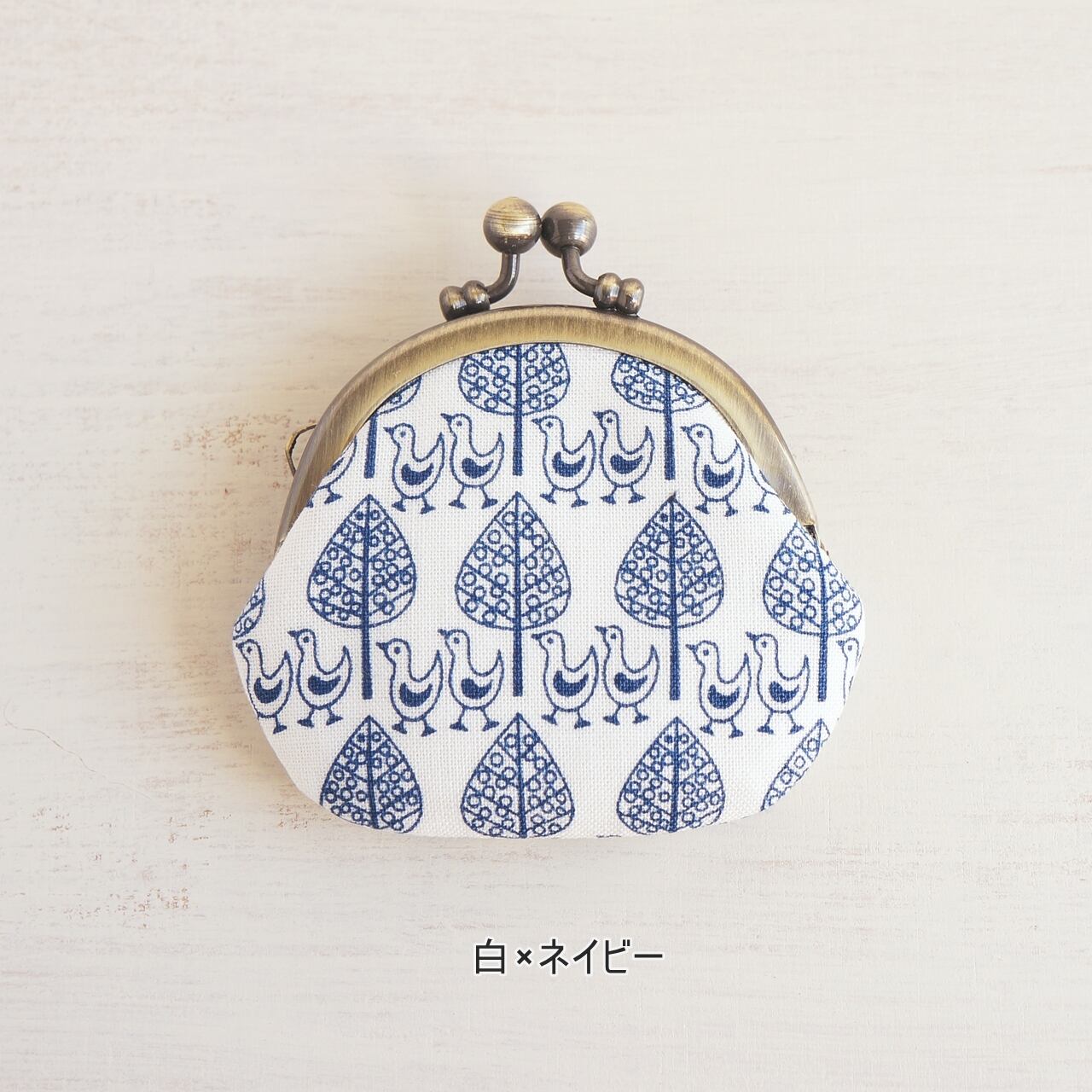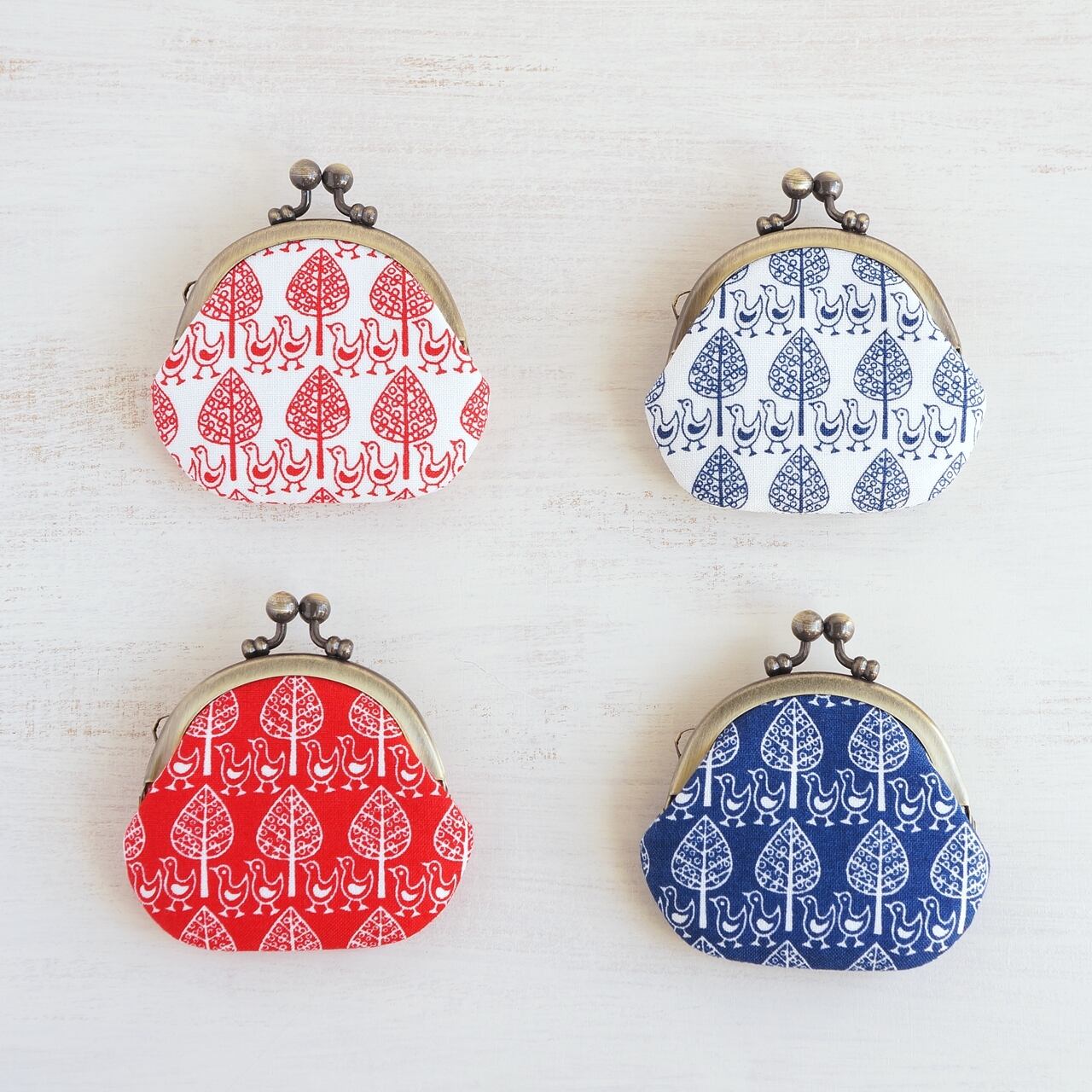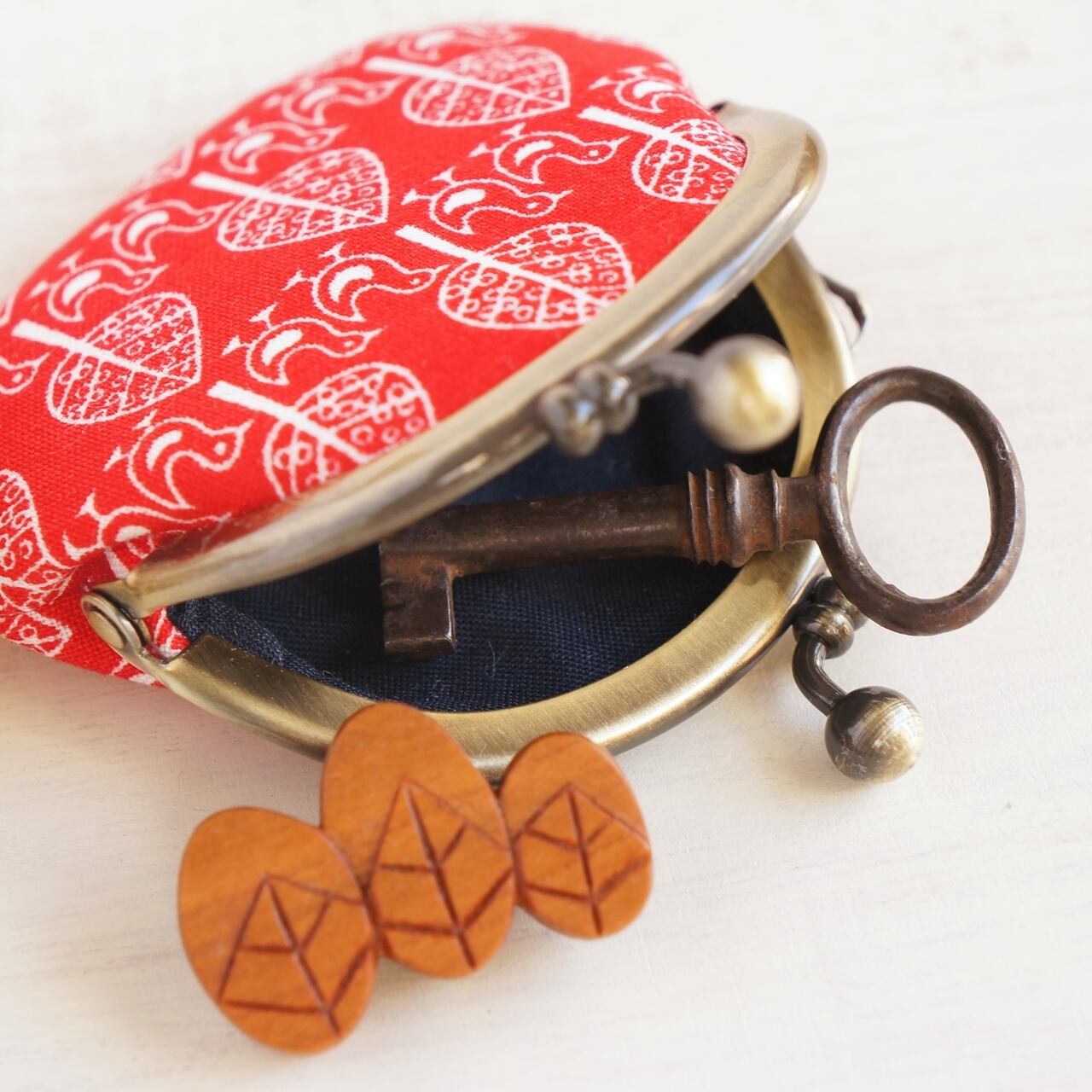 手のひらに収まるくらいの小さな丸型のがま口コインケースです。