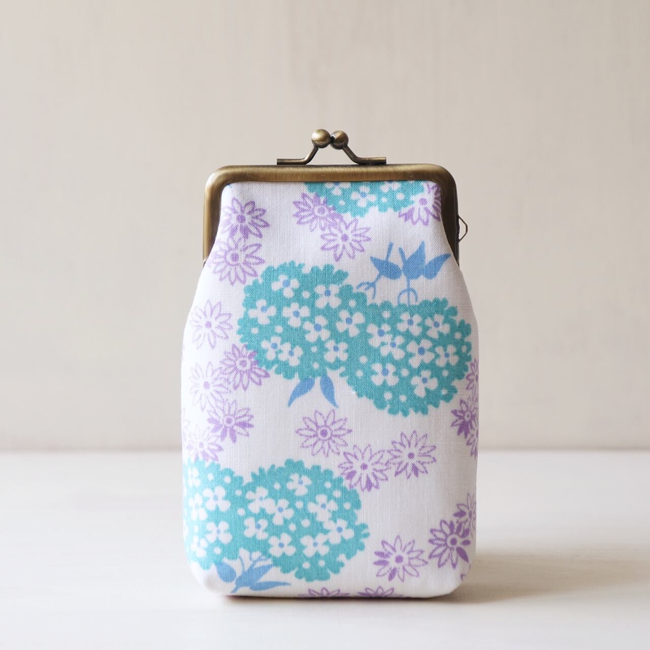 白地にあじさい柄が描かれたヴィンテージ生地でつくりました。