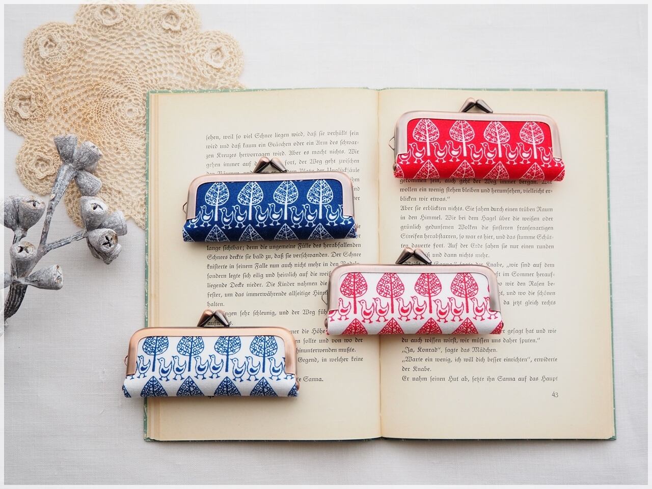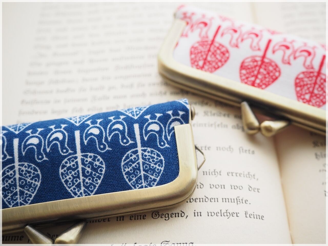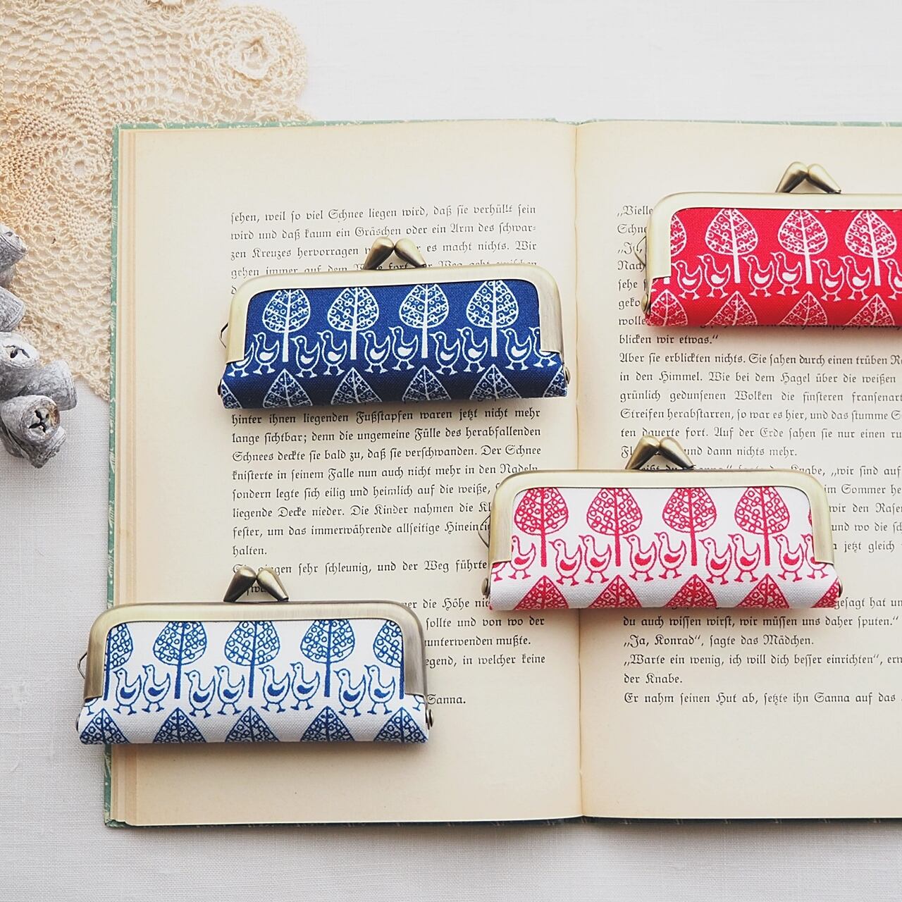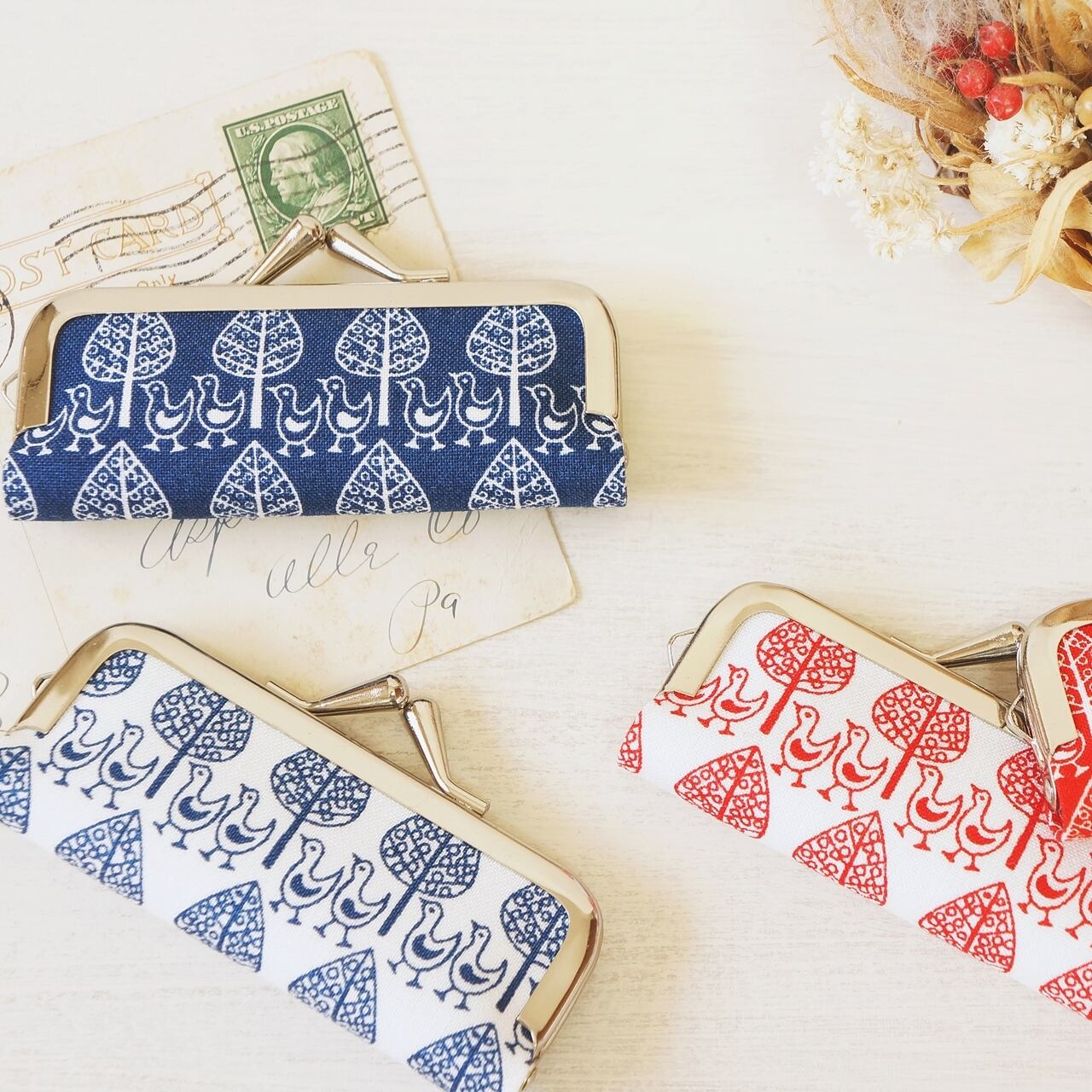 かわいい小鳥のプリントのドイツコットンで作ったがま口の印鑑ケースです。