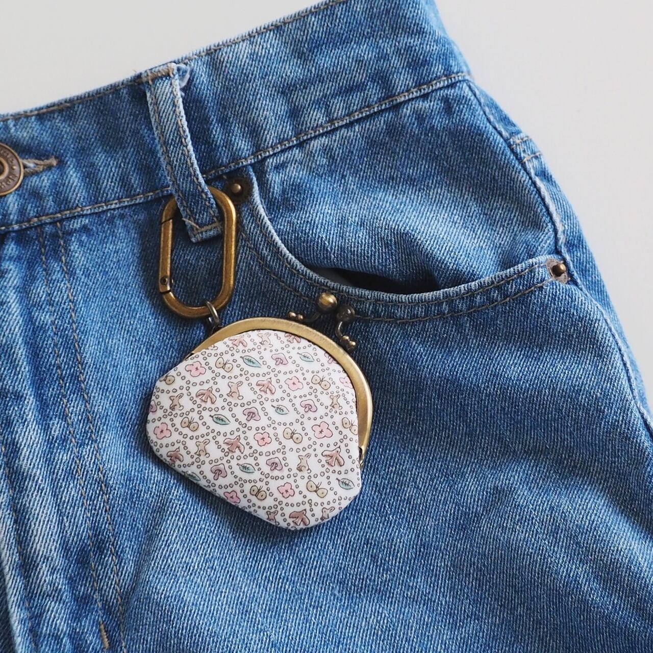 手のひらに収まるくらいの小さな丸型のがま口コインケースです。