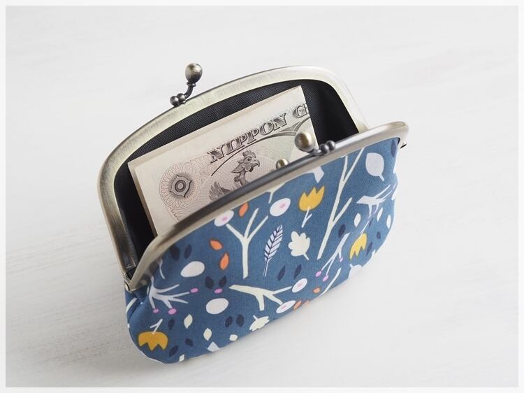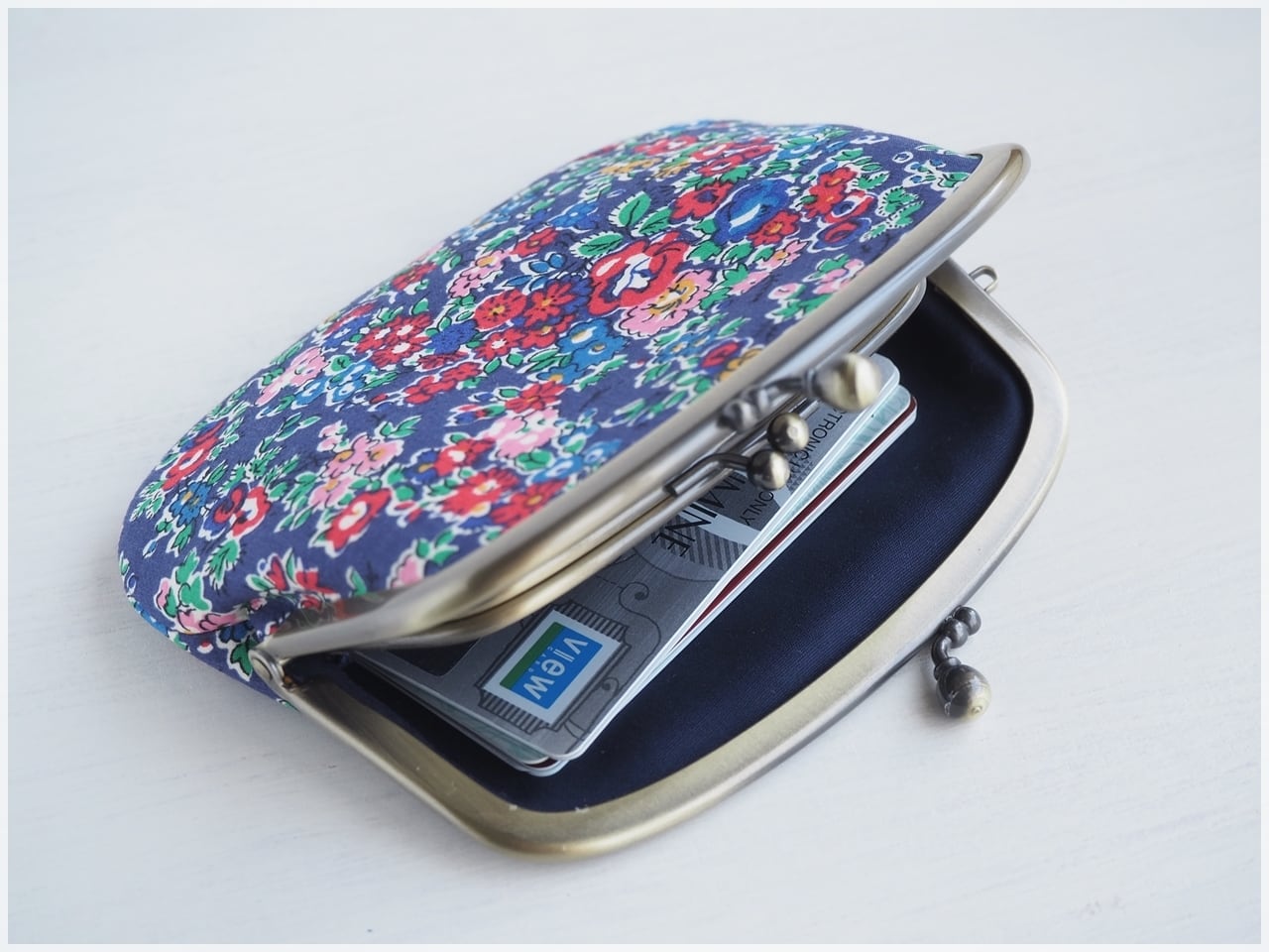 二つ折りのお札やカードが入るサイズの親子がま口財布です。