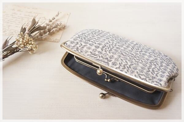 ■リバティ×ミナペルホネンの親子がま口長財布・スリーピングローズ / グレー■