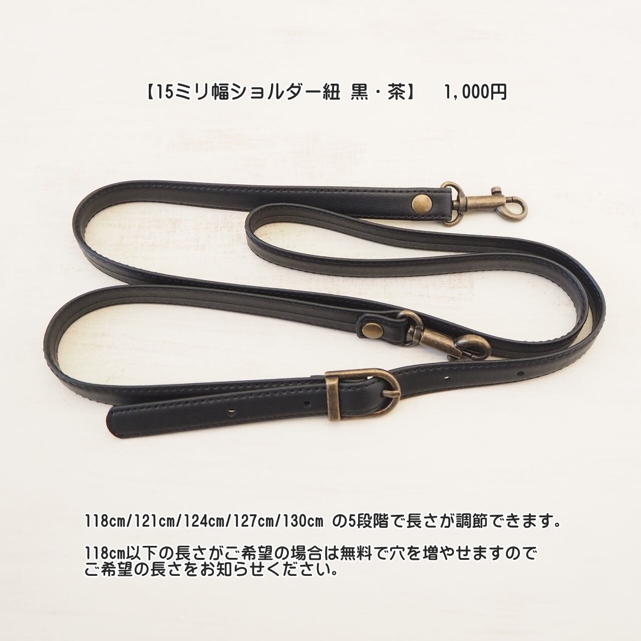 【15ミリ幅ショルダー紐 黒・茶】長さ調節可能 1,000円
