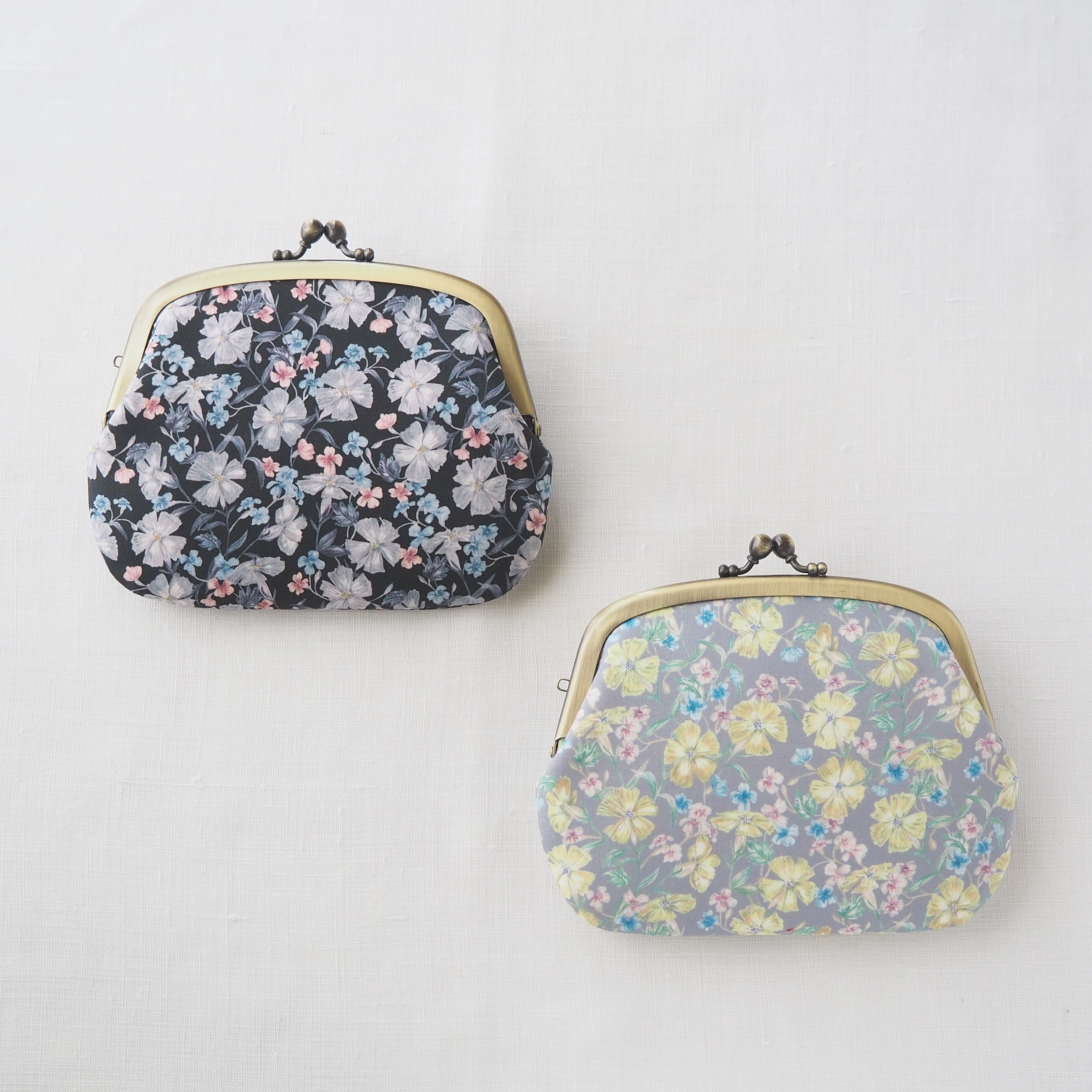 二つ折りのお札やカードが入るサイズのがま口財布です。