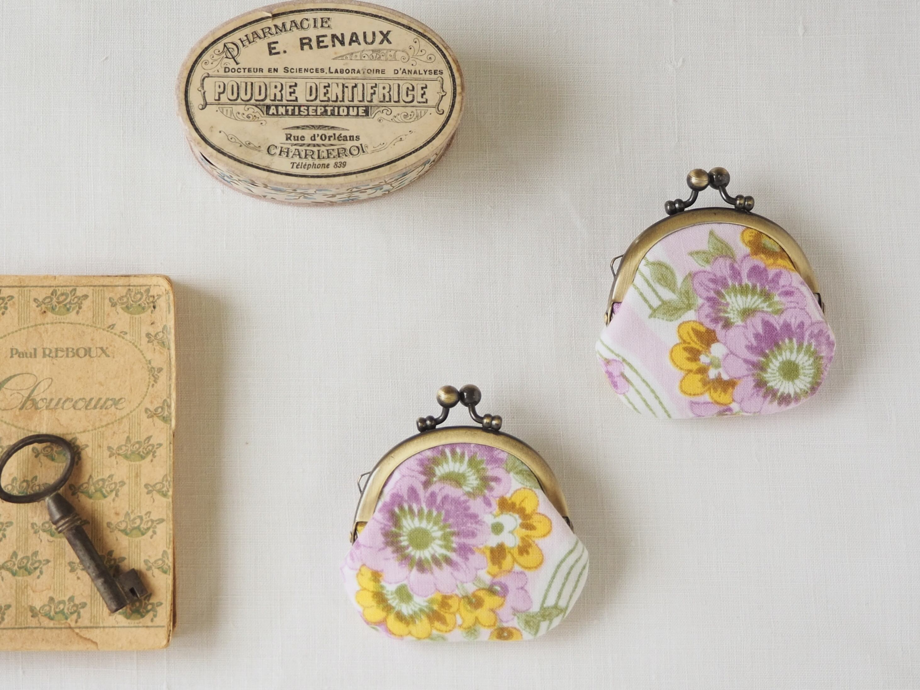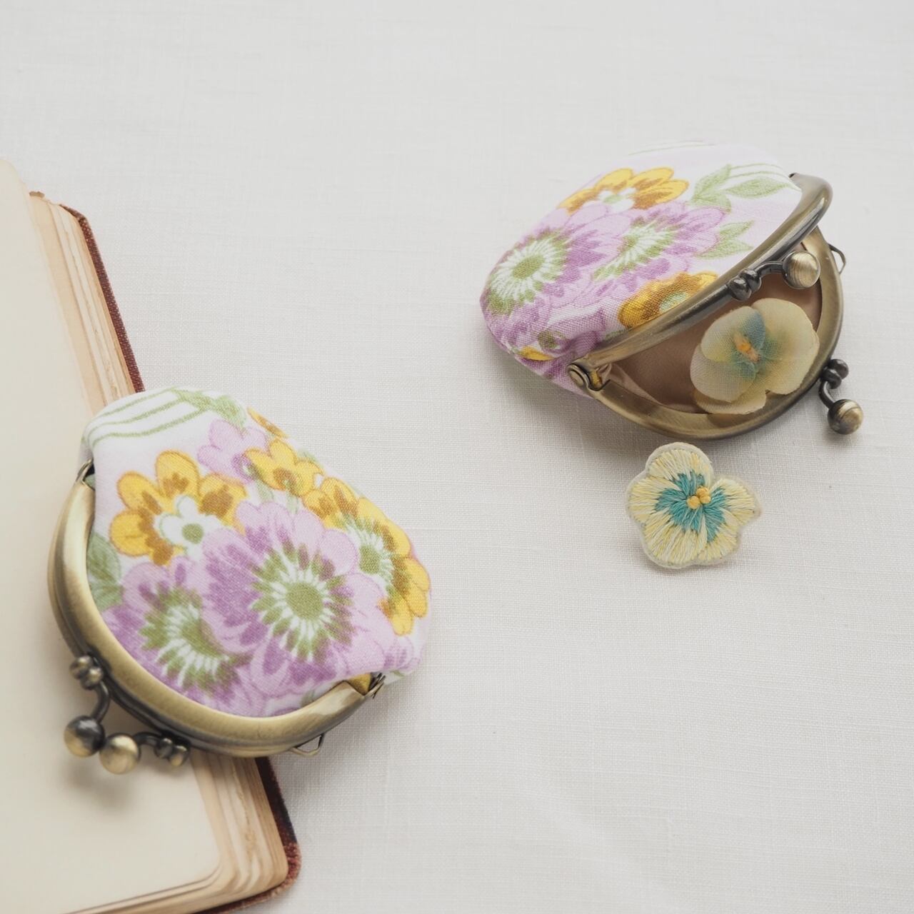 手のひらに収まるくらいの小さな丸型のがま口コインケースです。
