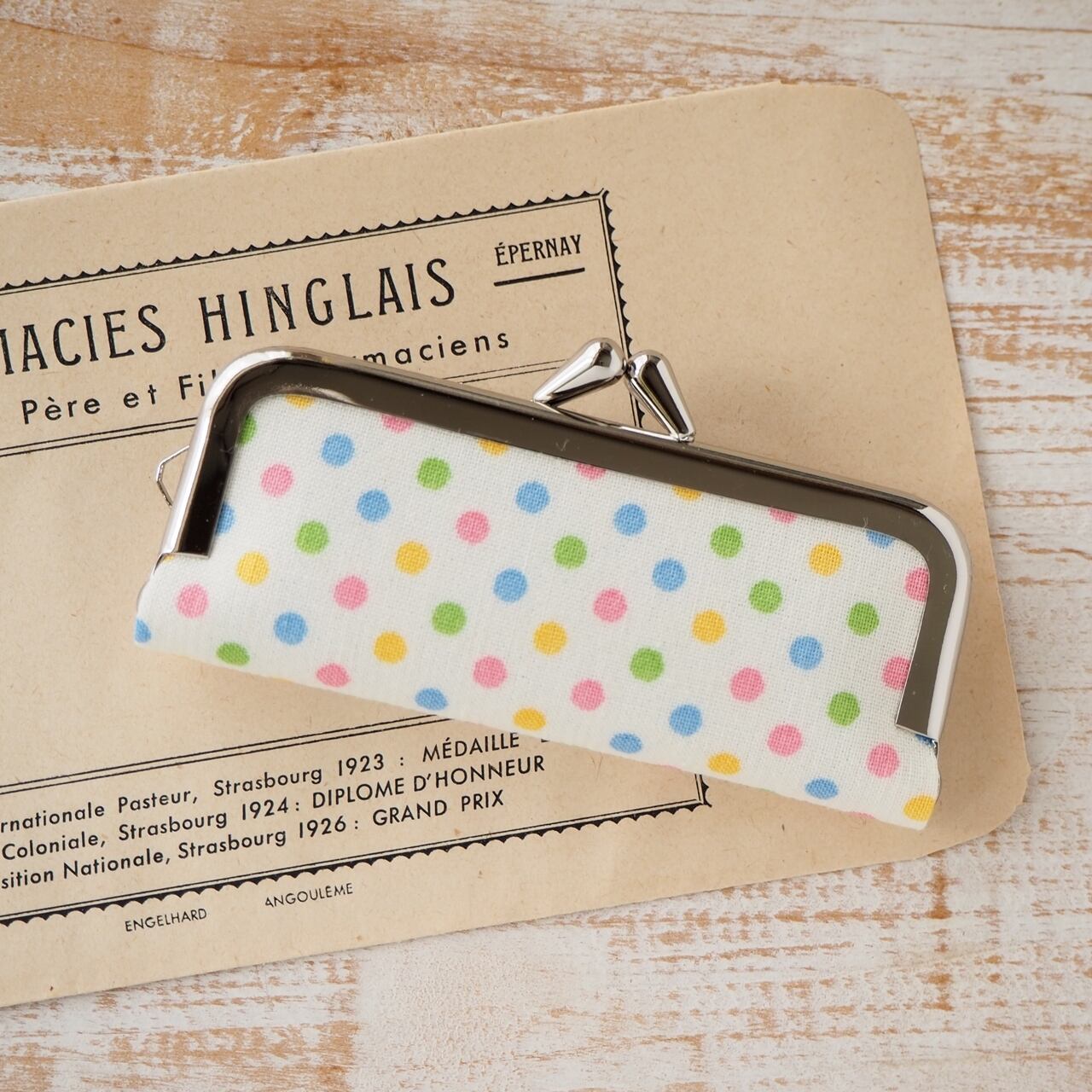 キャンディーカラーの水玉がかわいい がま口の印鑑ケースです。
