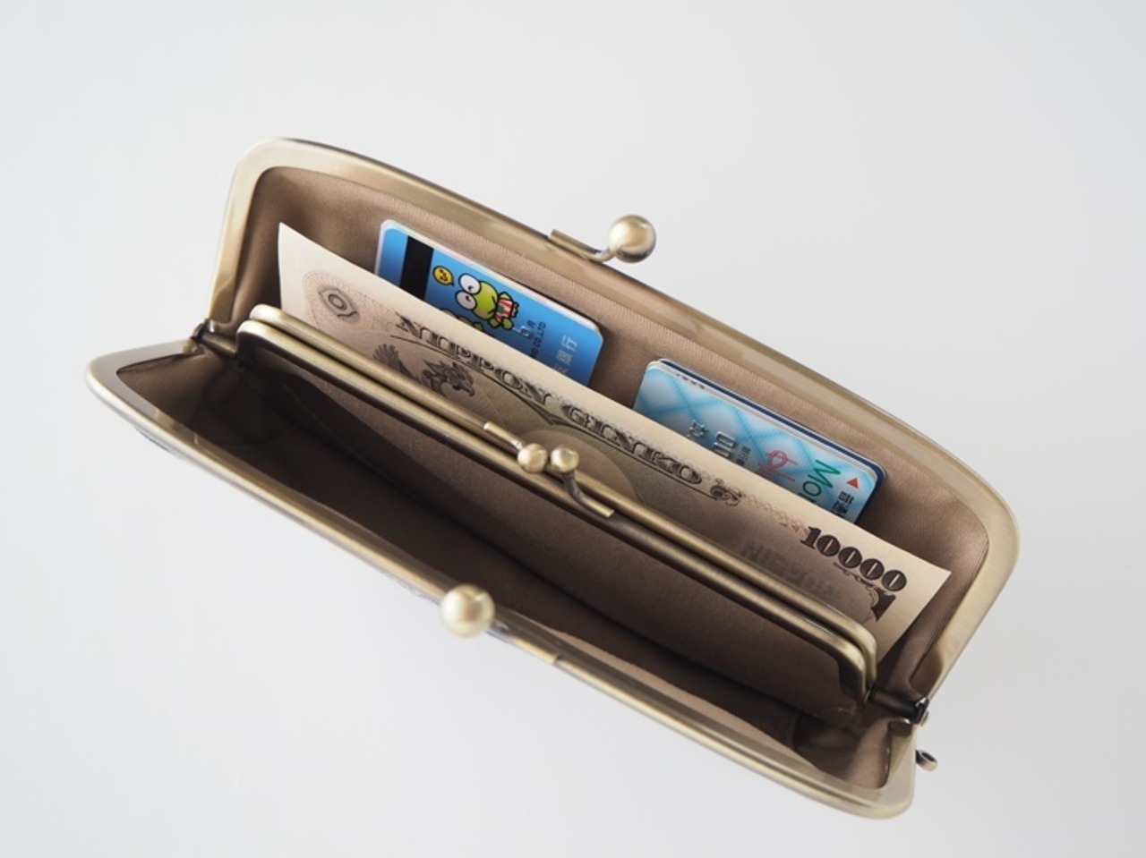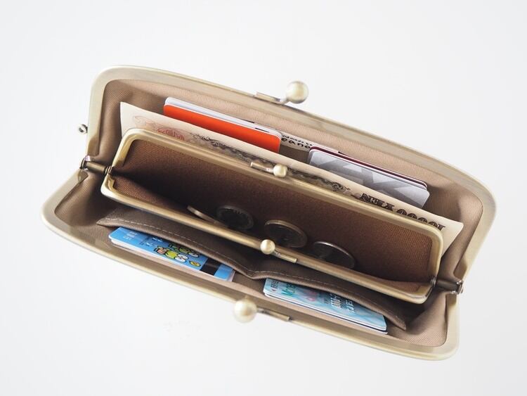 内側にもうひとつがま口がある親子タイプのがま口長財布です。