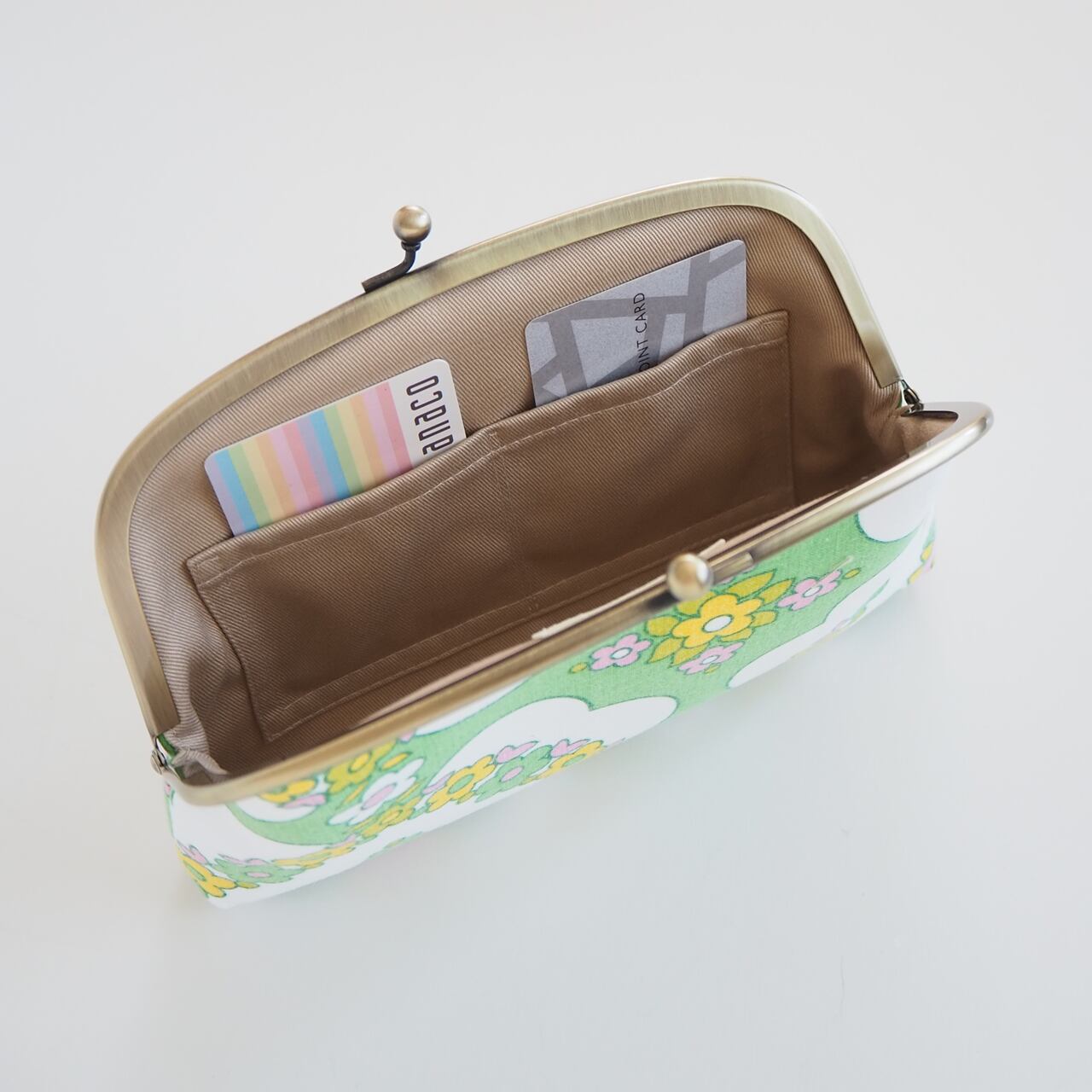 ■ヴィンテージファブリックのがま口通帳ケース / ミントグリーンの花柄■ mina (vf-gbf)