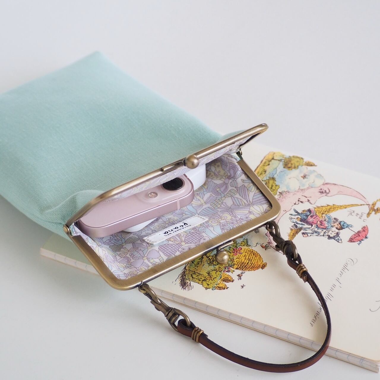 がま口のスマホショルダーポーチ・スマホポシェットです。