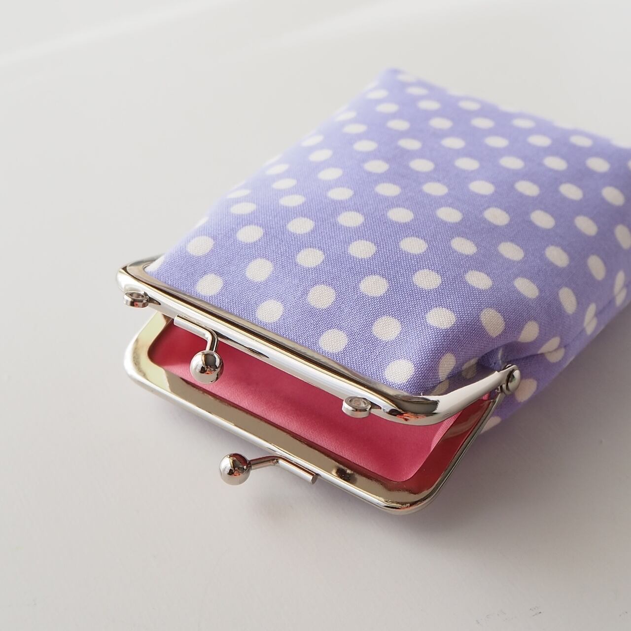 持ち手つきのがま口ポーチです。