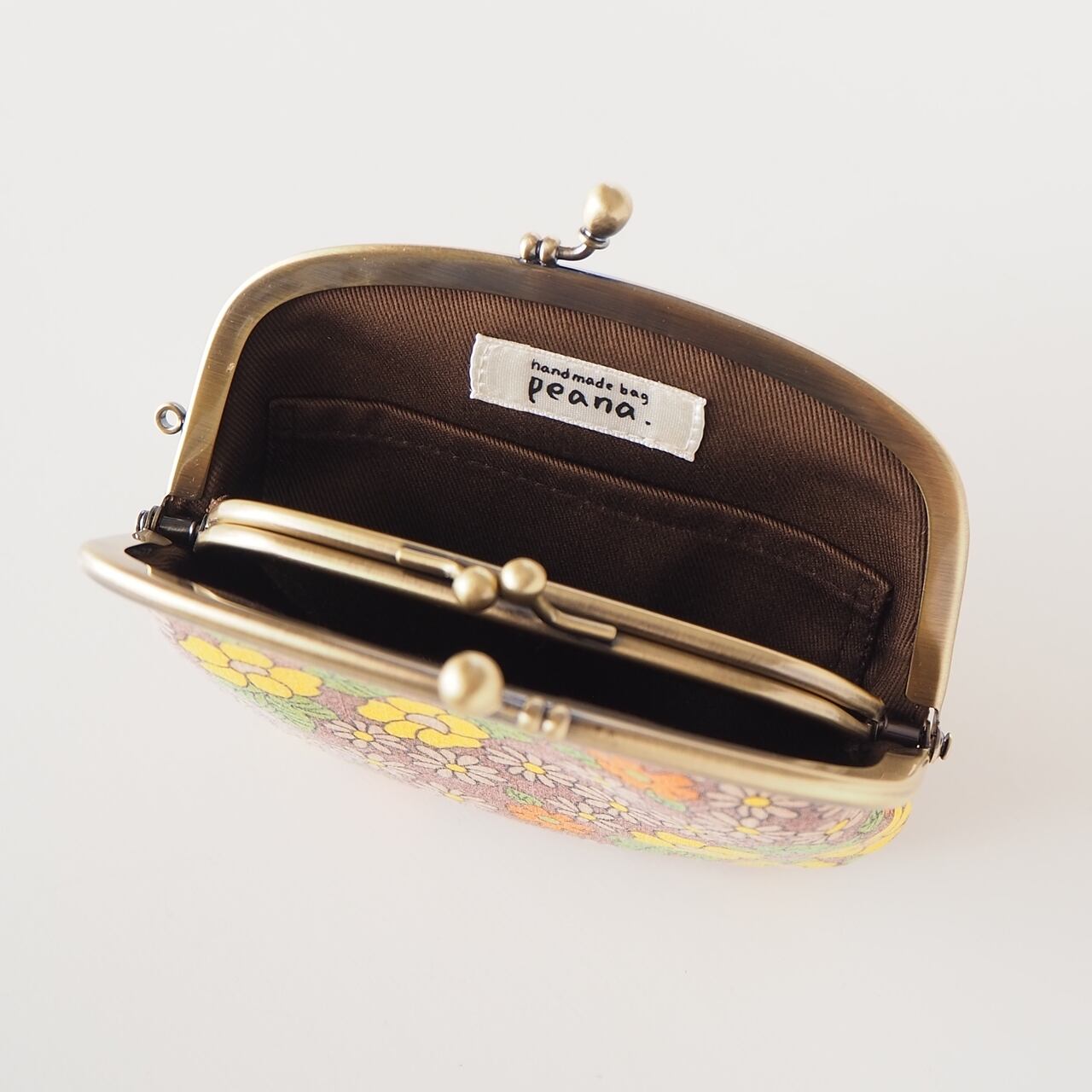 二つ折りのお札やカードが入るサイズの親子がま口財布です。